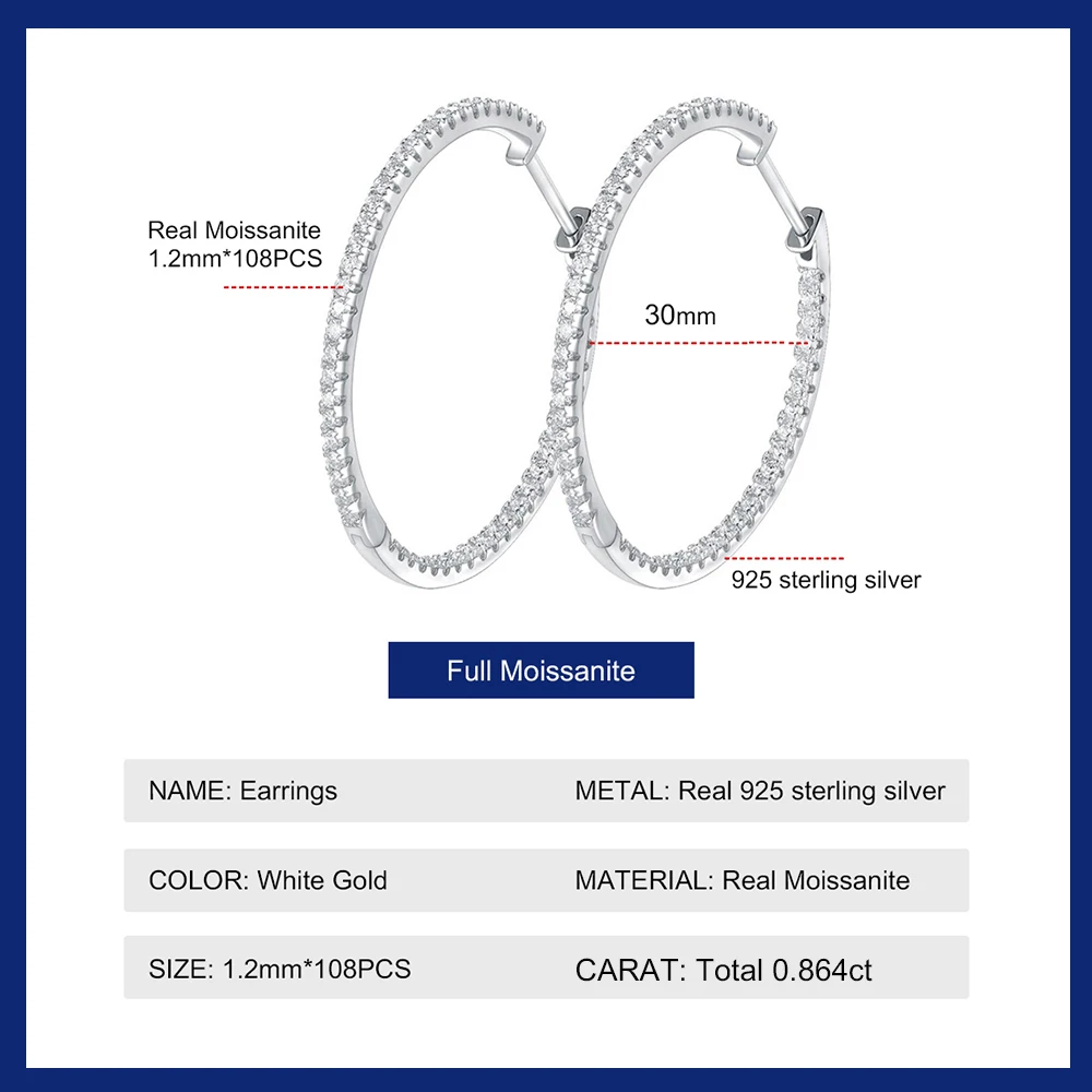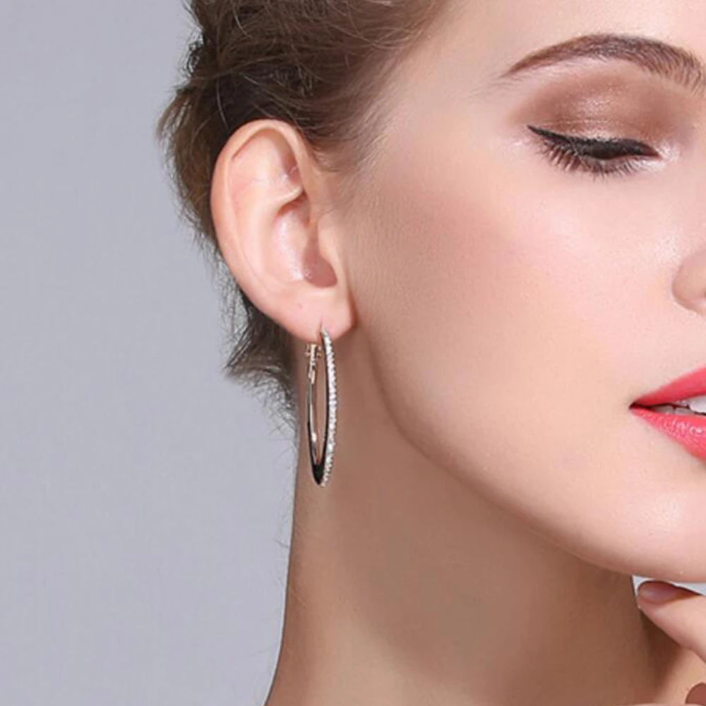 Hoop Earrings for Women Original 925 Sliver VVS1 Diamond Ear Studs Trendy All Moissanite