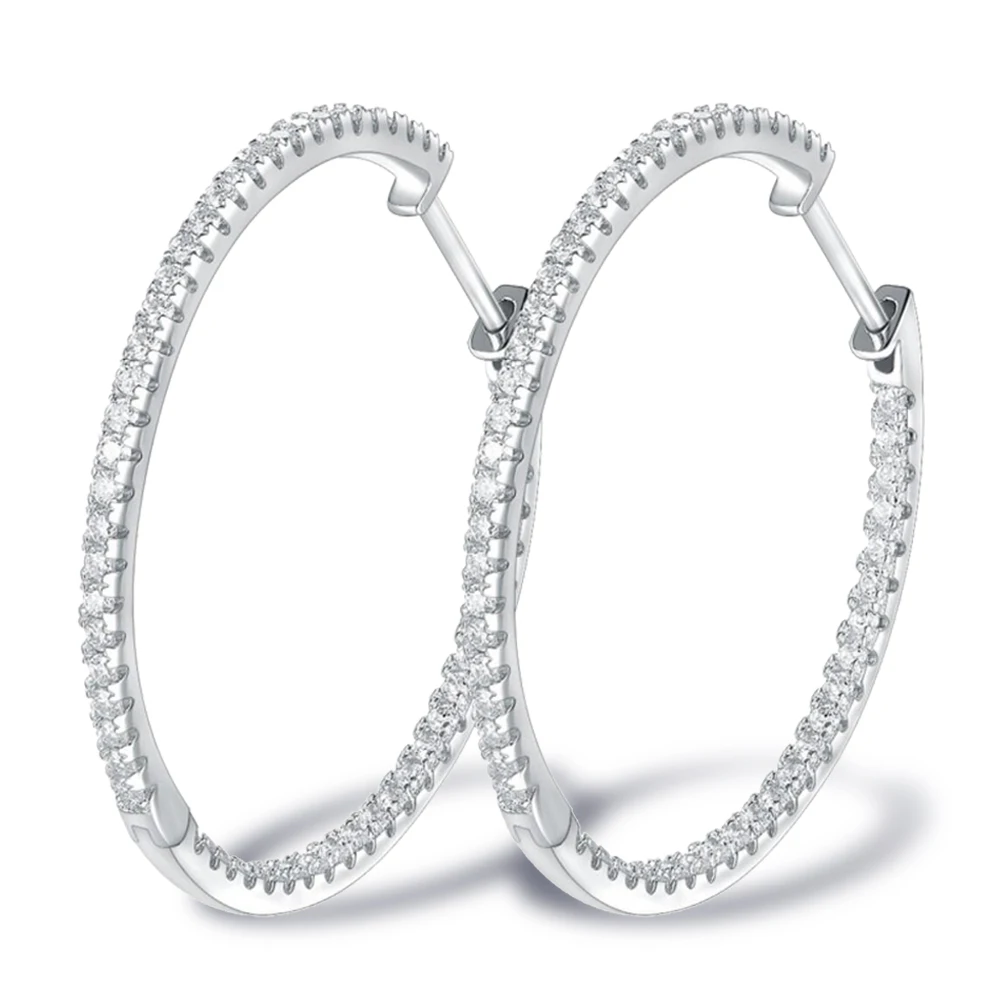 Elevate your jewelry collection with these sophisticated moissanite hoop earrings, crafted from authentic 925 sterling silver. Featuring brilliant VVS1-grade moissanite stones, these studs deliver exceptional sparkle and clarity that rivals traditional diamonds while offering superior durability and value. The timeless hoop design complements any occasion, from everyday wear to special events. Each pair is meticulously crafted to ensure premium quality and lasting brilliance. Perfect for those seeking luxury jewelry with modern appeal and ethical sourcing.