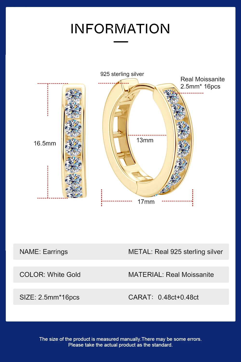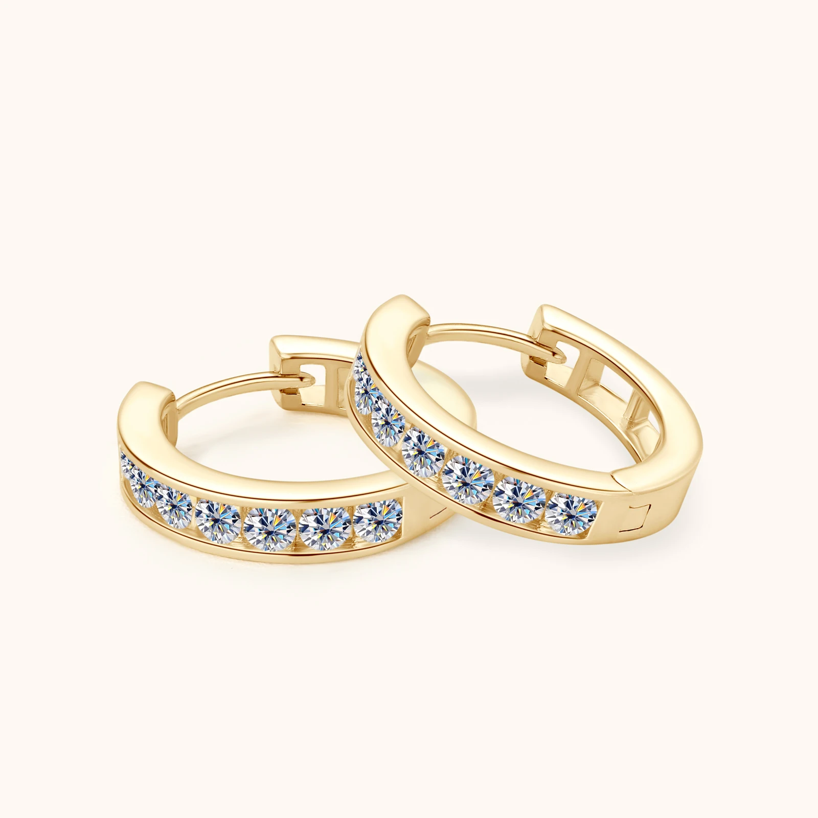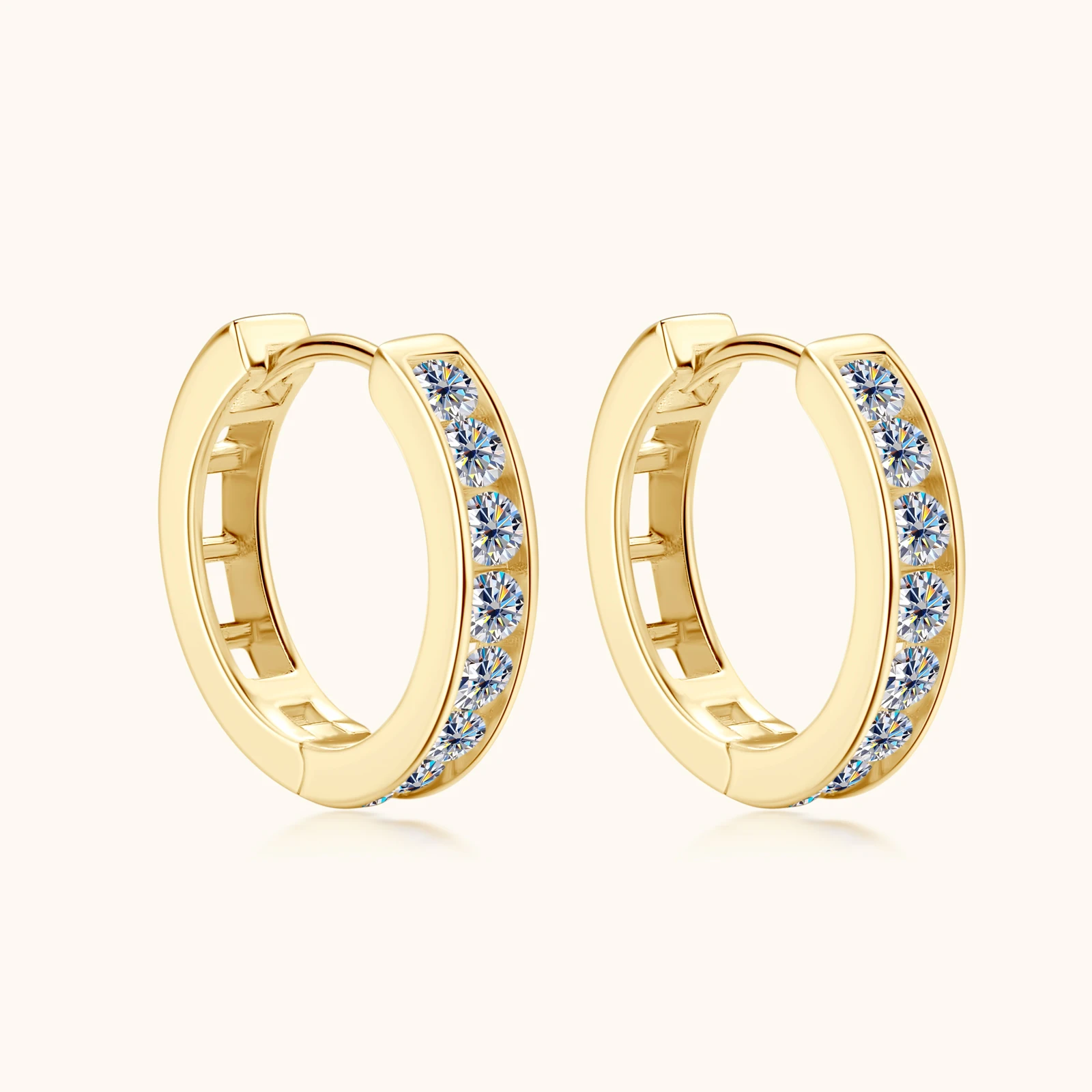 Elevate your jewelry collection with these sophisticated moissanite hoop earrings, crafted from premium 925 sterling silver and finished with 18K gold plating. Featuring 2.5mm full moissanite stones, these earrings deliver exceptional sparkle and brilliance comparable to diamonds, while offering superior durability and value. The GRA certification ensures quality and authenticity. Perfect for everyday elegance or special occasions, these versatile hoops complement any style. The secure construction and hypoallergenic sterling silver base make them ideal for sensitive ears. A timeless investment piece that combines luxury aesthetics with practical wearability.