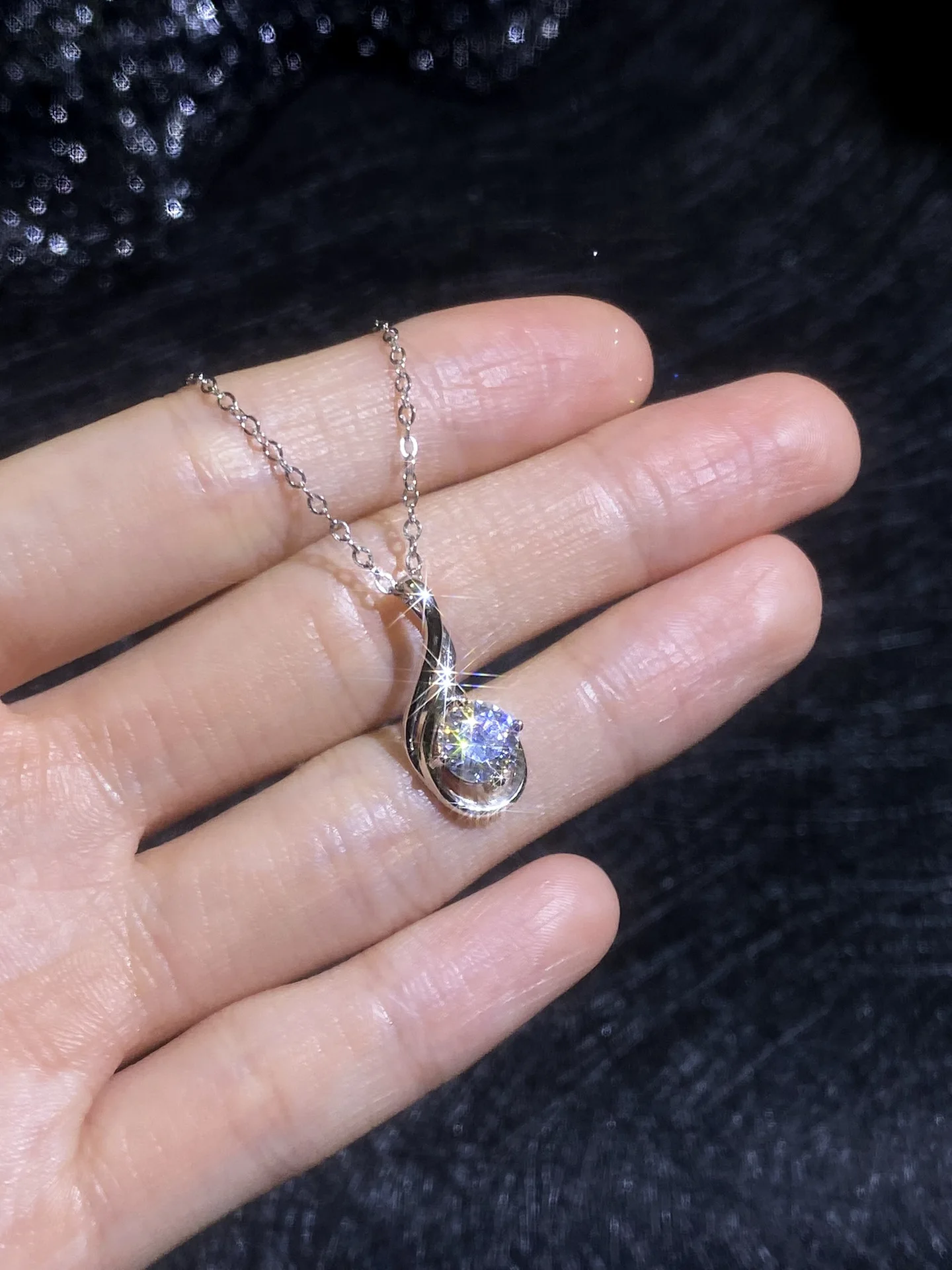 Infinity Note Necklace PT950 1Ct Japanese-Korean Minimalist Water Drop Pendant Hypoallergenic Platinum Jewelry Gift