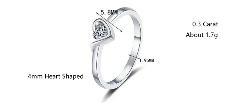 Lady Wedding Band White Gold 18K Heart Rings Women Valentine's Day 0.3CT Moissanite Diamond PT950 Platinum Girl Birthday Gift