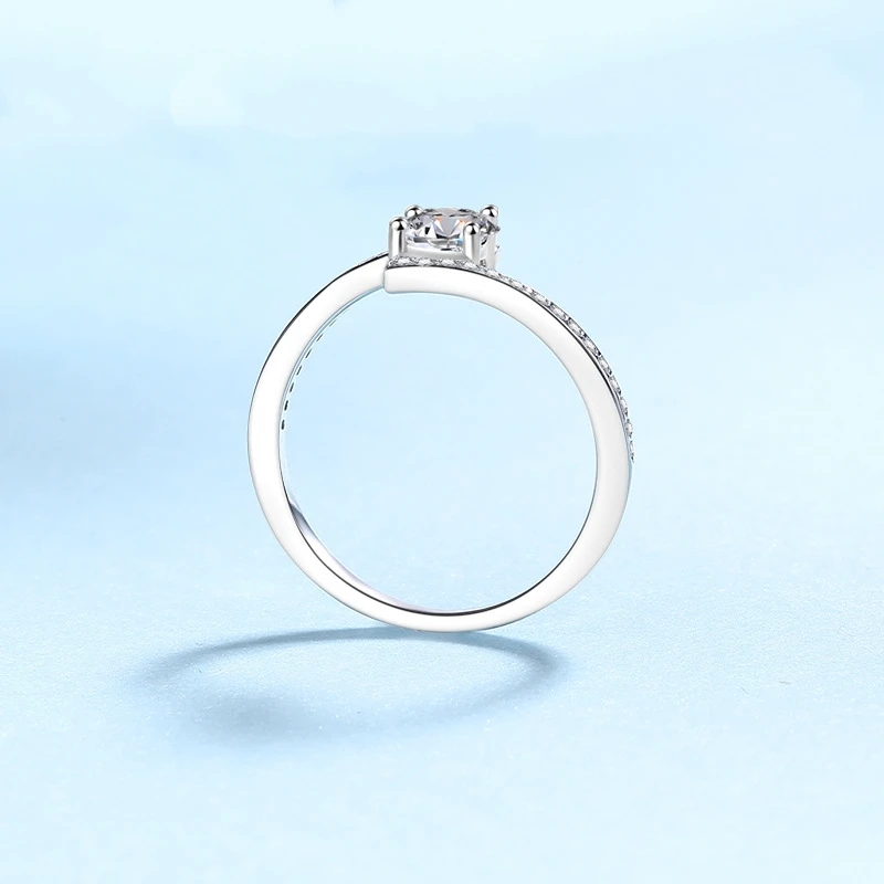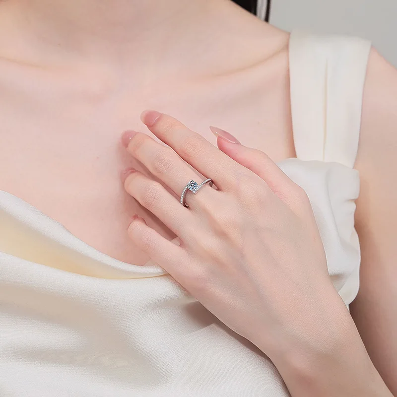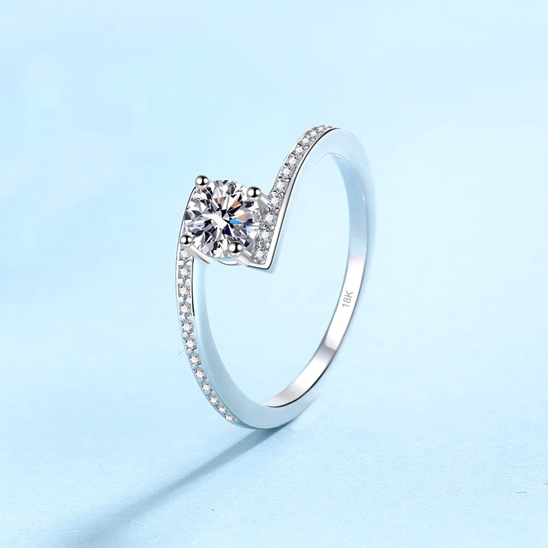This elegant offset ring represents the pinnacle of fine jewelry design, combining 18K white gold with PT950 platinum for uncompromising quality and longevity. The 0.5CT moissanite diamond delivers brilliant sparkle and exceptional clarity, providing a sophisticated alternative to traditional diamonds while maintaining superior hardness and resistance to wear. The distinctive offset setting creates visual intrigue and modern appeal, distinguishing this piece as a statement of refined taste. Whether marking Valentine's Day, a birthday, or an engagement, this wedding band speaks to commitment and elegance. Expertly finished to showcase the stone's radiance and the precious metals' lustrous depth, it's a timeless investment for the woman who demands excellence in every detail.