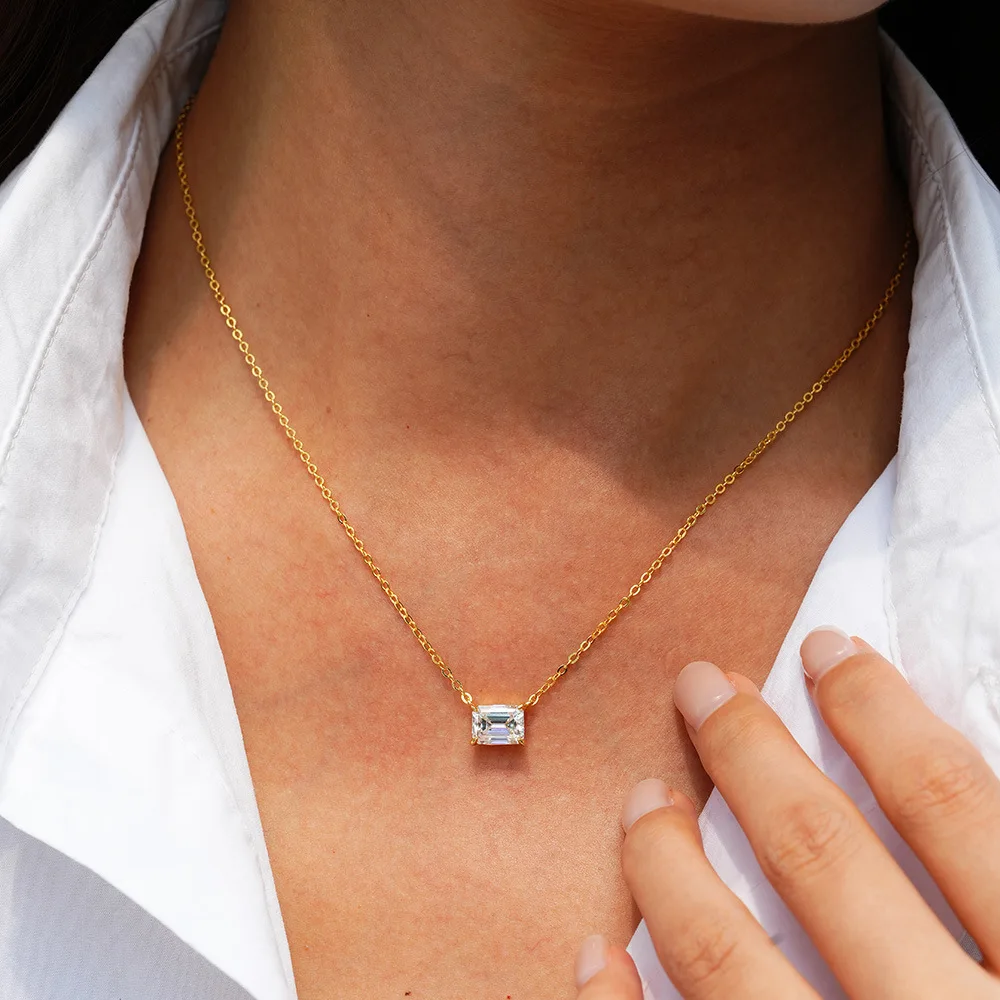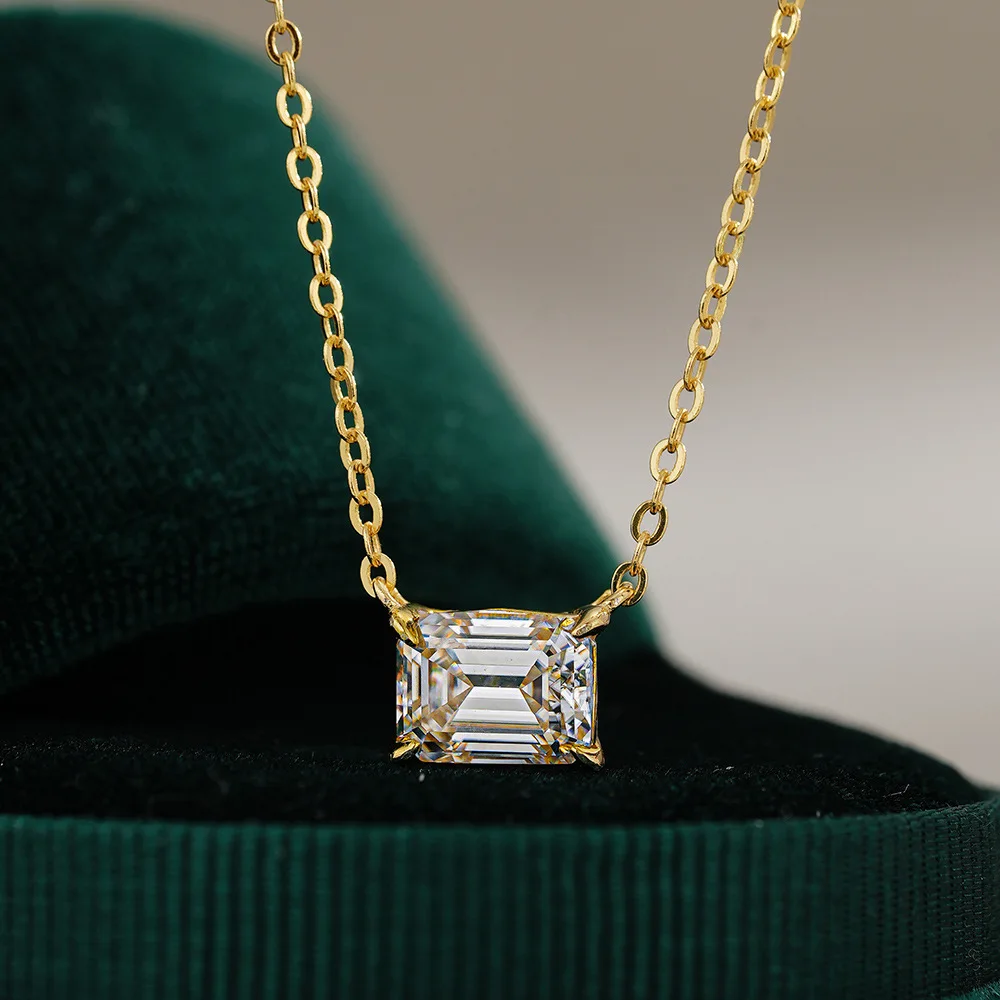 Luxury 1ct/2ct Diamond Rectangular Emerald Pendant Women's 14K Gold Moissanite Necklace Vvs Platinum Wedding Fine Jewelry Gift