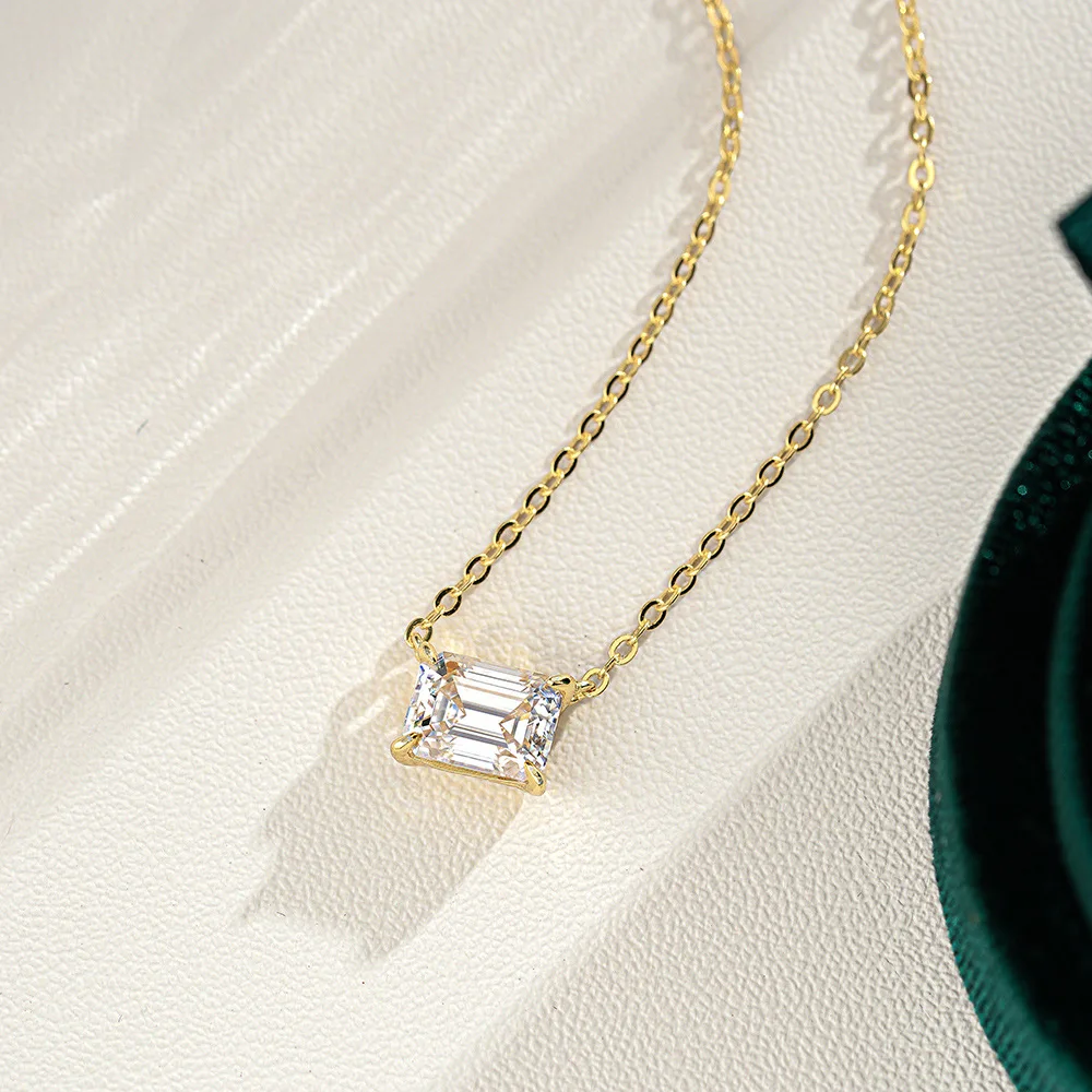 Discover the perfect blend of luxury and value with this exquisite rectangular emerald pendant. Available in 1ct or 2ct moissanite, each stone delivers diamond-like sparkle with superior clarity—graded VVS for uncompromising quality. Select between elegant 14K gold or prestigious platinum settings that enhance the stone's brilliance while ensuring generations of wear. This sophisticated design captures light beautifully from every angle, making it an investment piece that commands attention. Whether marking a milestone, celebrating love, or treating yourself, this fine jewelry pendant offers timeless appeal at an exceptional value. Make a statement that lasts forever.