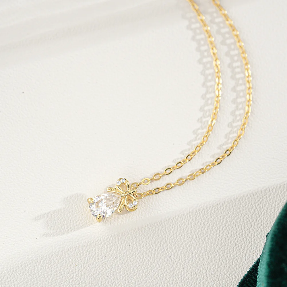 Luxury Bow Drop Pendant for Women 14K Gold Full of 0.8ct Diamond Moissanite Necklace Wedding Fine Jewelry