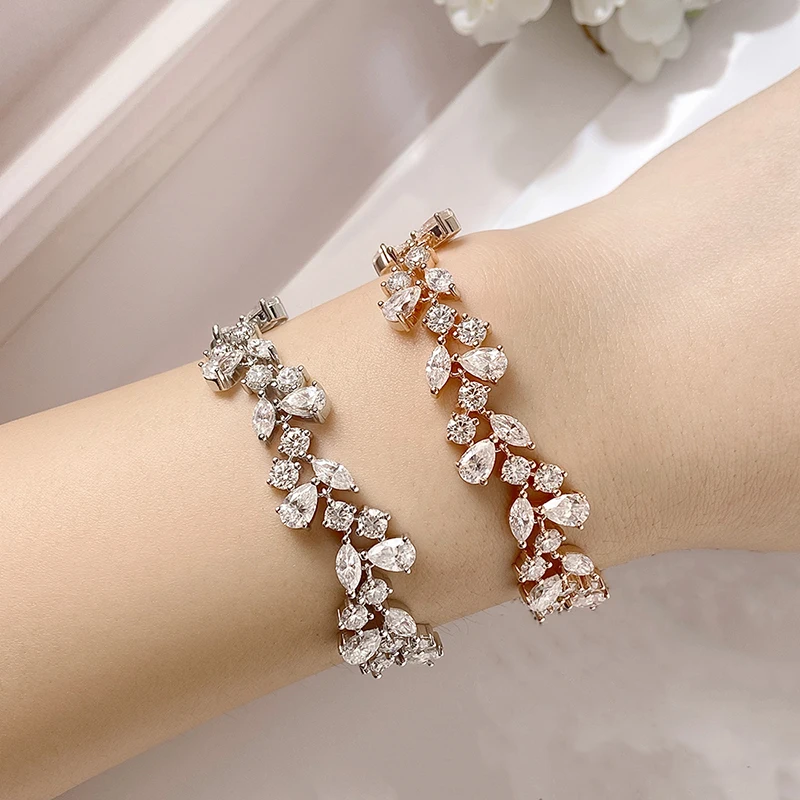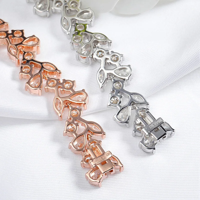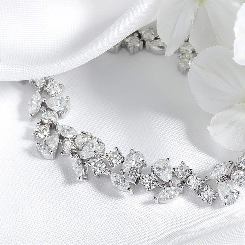 Elevate your bridal collection with this exquisite water drop moissanite bracelet, a stunning fusion of luxury and elegance. Crafted from sterling silver with 18K gold plating, this full-diamond bangle features brilliant moissanite stones totaling 16.8-20.4 carats, delivering exceptional sparkle and sophistication. The graceful water drop design creates a refined silhouette perfect for weddings, anniversaries, or milestone celebrations. Each stone is meticulously set to maximize radiance while maintaining timeless appeal. An investment piece that combines fine craftsmanship with the durability of moissanite, this bracelet offers the glamour of luxury jewelry with lasting brilliance.