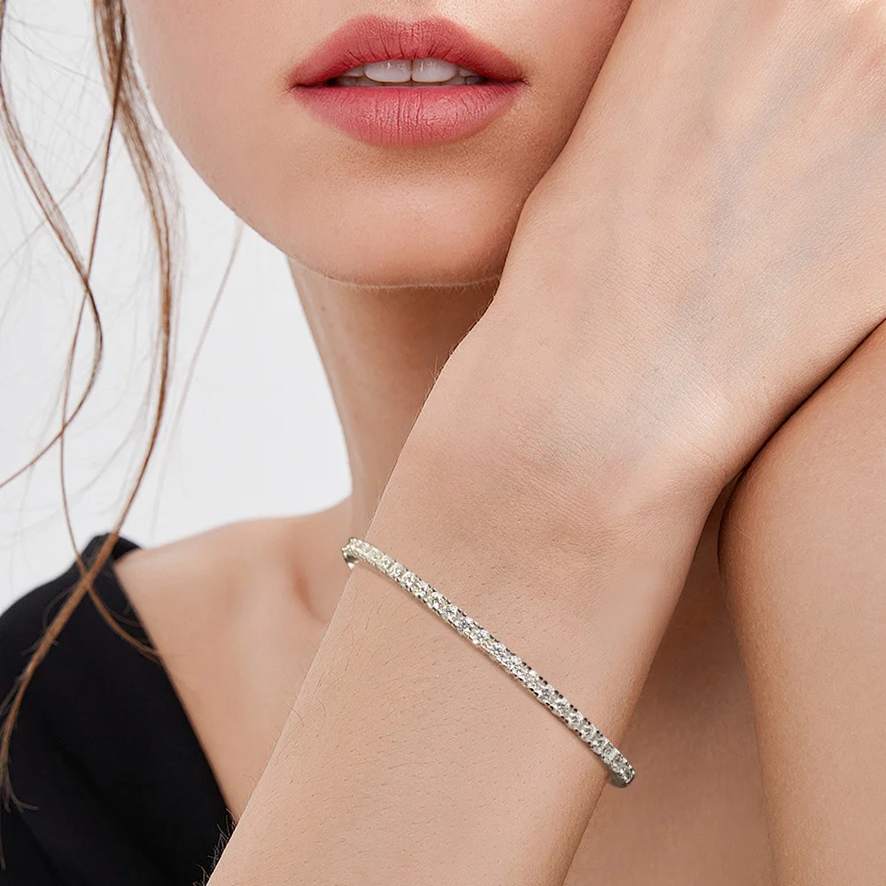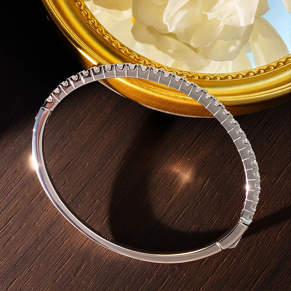 These moissanite bangles represent a sophisticated alternative to traditional diamond jewelry, featuring precisely cut 2.5mm stones with D color and VVS1 clarity ratings. Constructed from genuine 925 sterling silver, they offer remarkable optical performance and longevity. Lab-created moissanite delivers exceptional value while maintaining the brilliance and durability expected in fine jewelry. Whether marking a special occasion or building your everyday collection, these bangles provide versatile elegance suitable for both formal events and casual wear. The combination of premium materials and expert craftsmanship ensures a piece that will be treasured for generations.