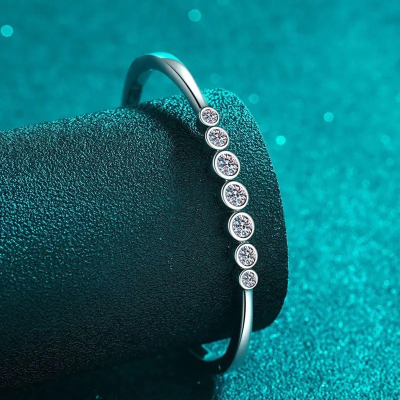 Elevate your elegance with this 2.5ct Moissanite bangle, expertly crafted from solid 925 silver. Designed for wrists measuring 16-17cm, it features GRA-certified stones that deliver exceptional brilliance and enduring clarity. This sophisticated bracelet blends refined craftsmanship with timeless style, making it ideal for weddings or special occasions. Its durable construction ensures lasting wear, while the radiant moissanite offers a striking alternative to traditional diamonds. Perfect for those seeking quality and brilliance in a graceful, contemporary accessory.