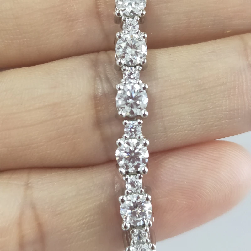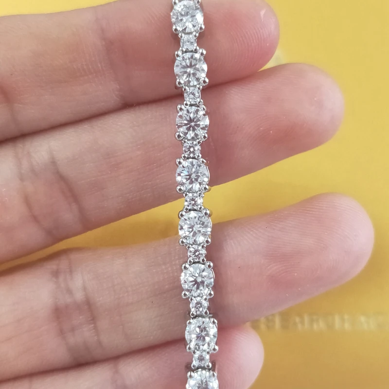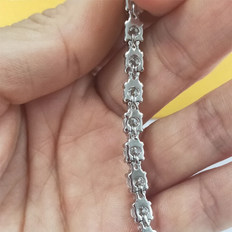This exquisite moissanite bracelet showcases 2.7 carats of D color stones set in premium 925 sterling silver, delivering uncompromising quality and radiance. Each stone is precisely cut to maximize light performance, offering the brilliance of fine jewelry at exceptional value. The robust sterling silver setting ensures lasting durability while maintaining its lustrous finish. Perfect for gifting or personal indulgence, this bracelet transitions seamlessly from casual wear to formal occasions. An investment in timeless elegance that combines expert craftsmanship with the superior optical properties moissanite is renowned for.