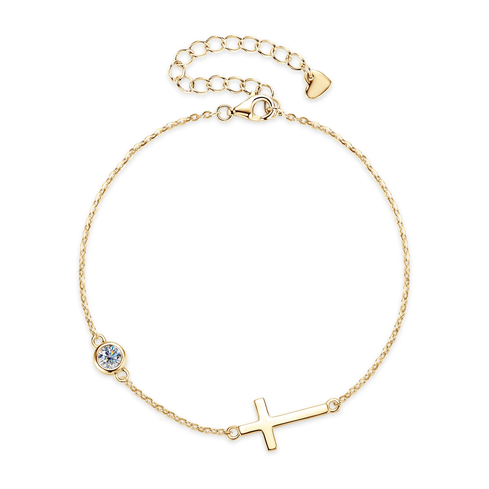 Experience the brilliance of these stunning Moissanite Bracelets. Made with 925 sterling silver and a 4MM adjustable chain, these bracelets also include a certificate for authenticity. The cross design adds a touch of elegance, making it the perfect jewelry gift for any woman. Plated with 18k gold, these bracelets exude beauty and luxury.