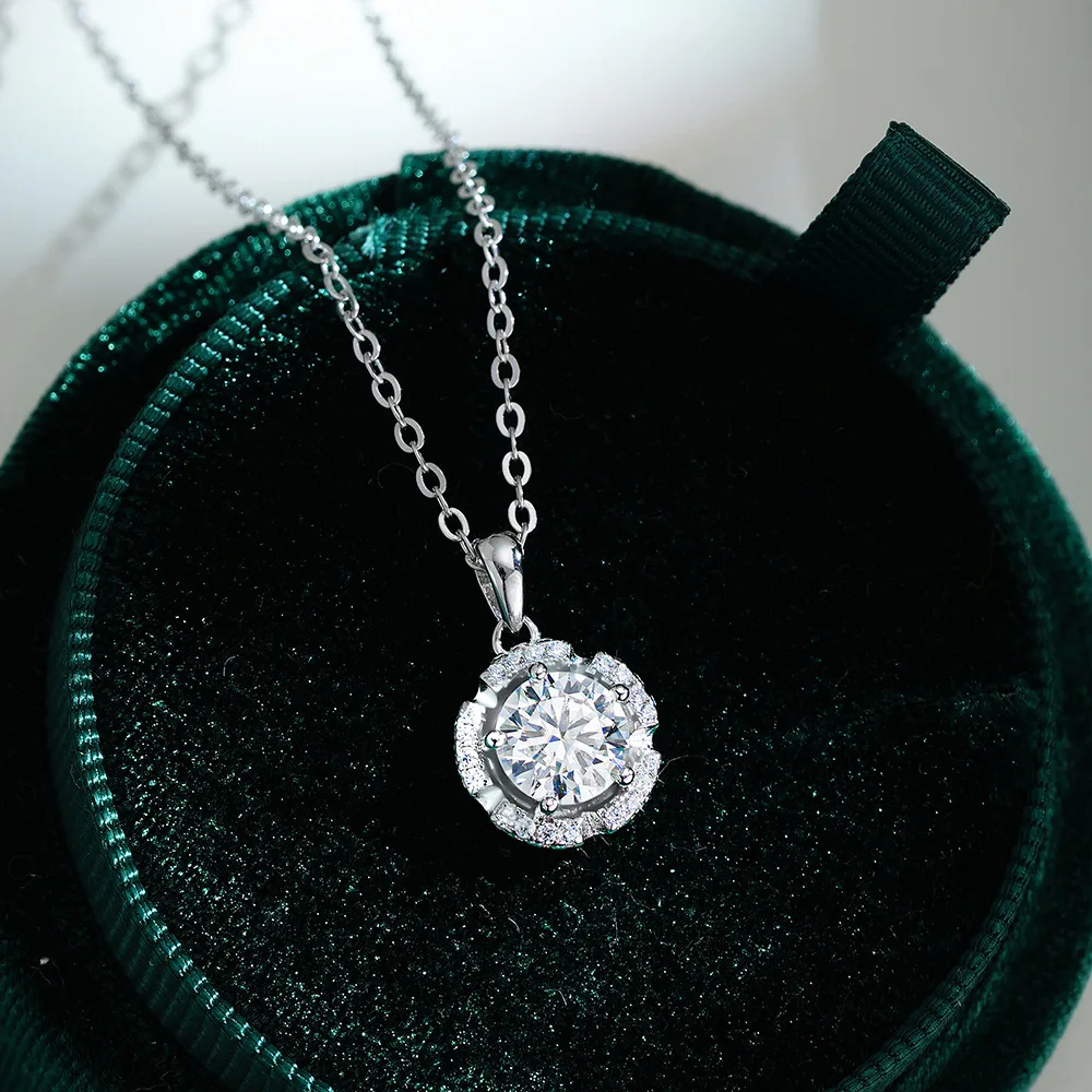 Moissanite Diamond Necklace 18k White Gold 1ct for Women Platinum Pt950 Plum Blossoms Pendant Collarbone Chain Fine Jewelry
