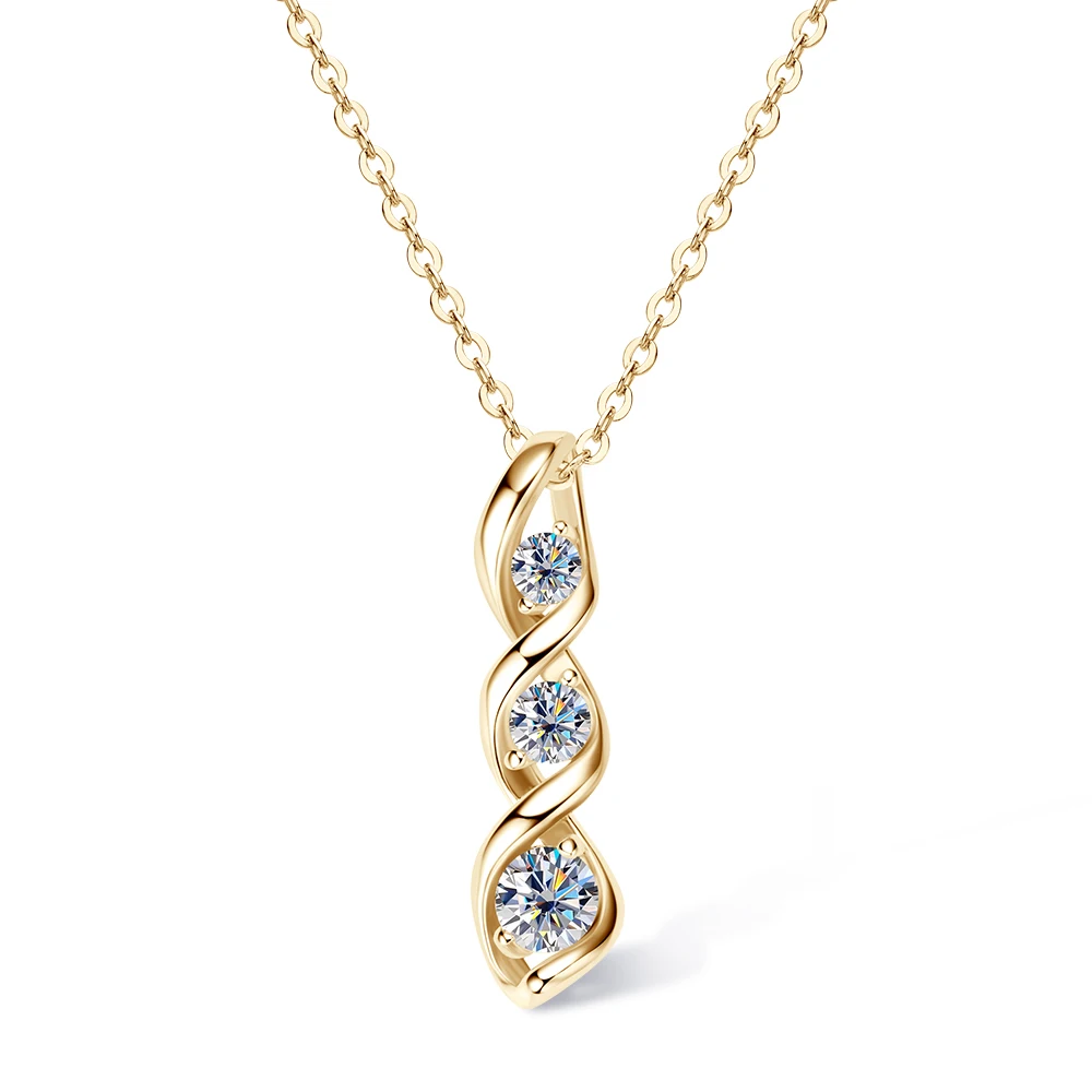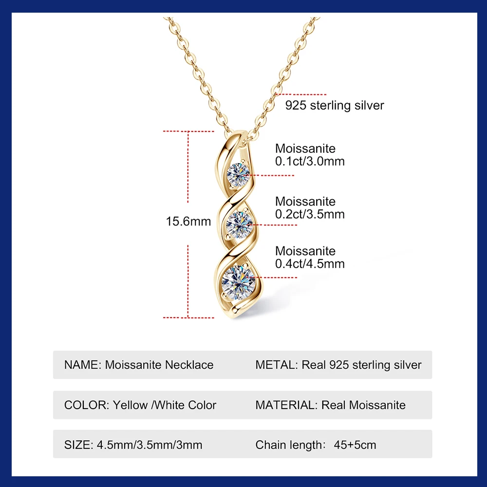 Moissanite Diamond Necklace Gift for Women 925 Sterling Silver 18K White/Yellow Gold Plated Twisted Pendant Chain