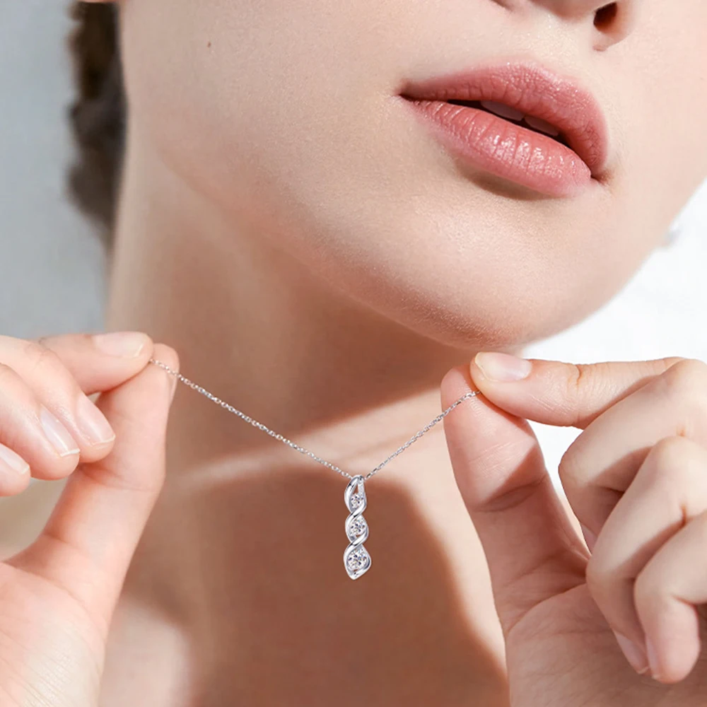 Seize the spotlight with this audacious moissanite necklace that refuses to whisper. Constructed from 925 sterling silver and finished with 18K white or yellow gold plating, the twisted pendant design embodies raw power and contemporary edge. Moissanite's explosive brilliance and unbreakable strength make it the ultimate rebellion against tradition. This piece doesn't follow trends—it sets them. An extraordinary gift for the woman who lives boldly and lets her jewelry speak volumes about her fearless spirit.