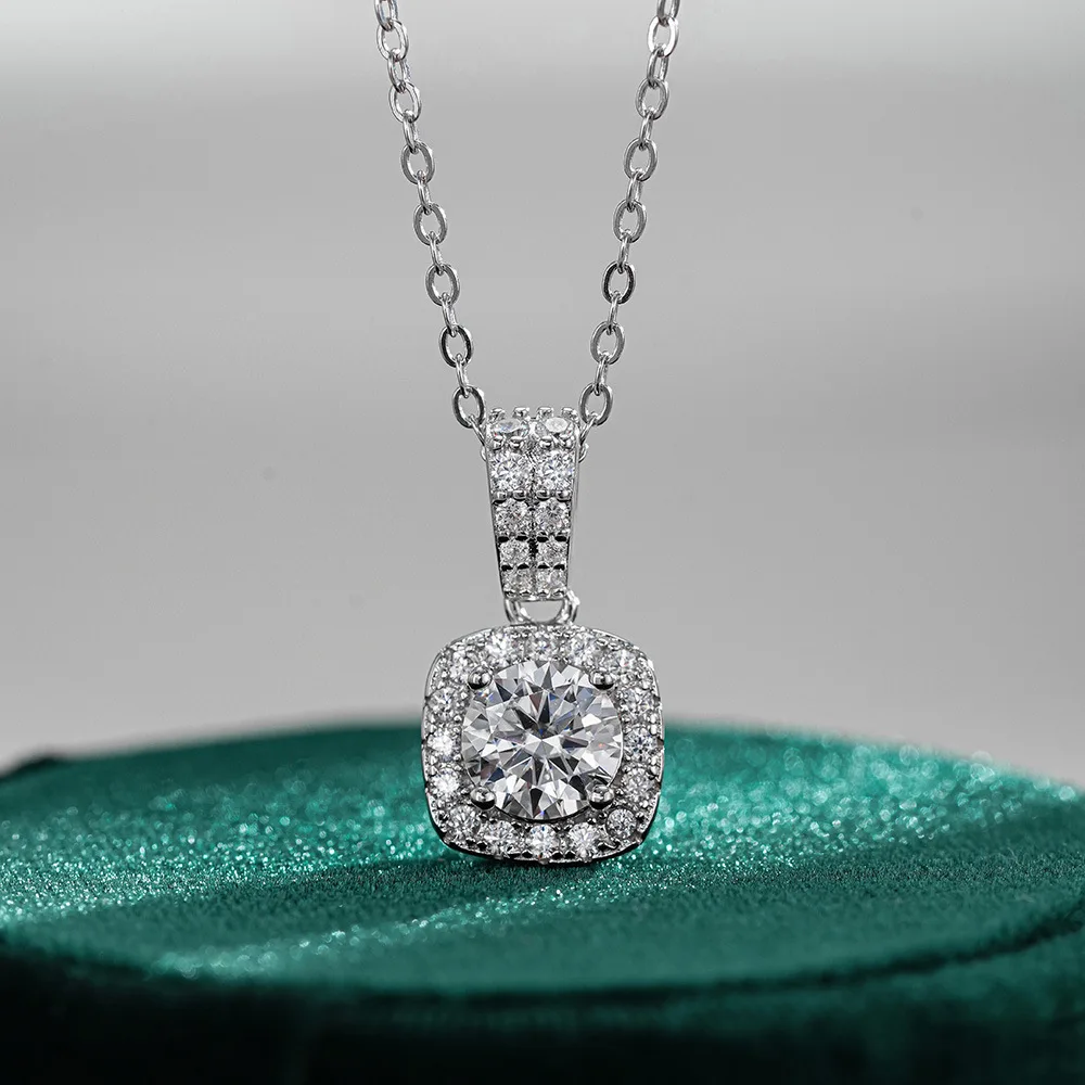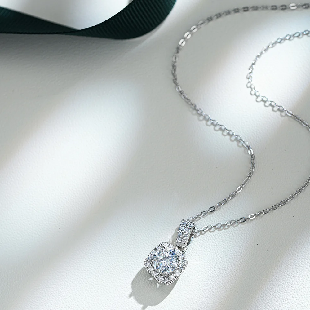Moissanite Diamond Necklace Pendant 18k White Gold 1ct for Women Classic Square Bag Platinum Pt950 Accessories Fine Jewelry