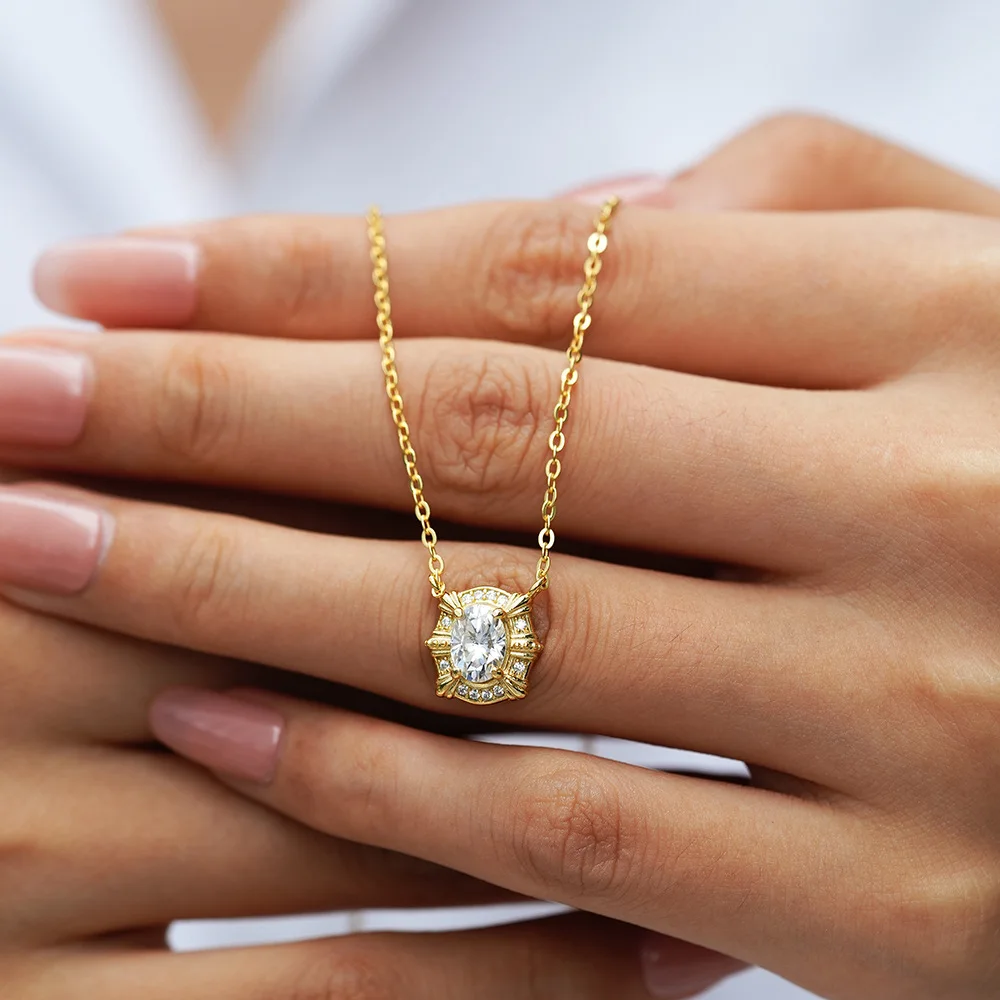 Elevate your everyday elegance with this sophisticated moissanite pendant necklace. Featuring a stunning 1-carat egg-shaped stone, this piece combines timeless design with modern luxury. The moissanite diamond offers exceptional brilliance and durability comparable to natural diamonds, while maintaining an accessible price point. Perfectly proportioned for a delicate clavicle chain, this necklace transitions seamlessly from casual wear to special occasions. Ideal for weddings, anniversaries, or as a meaningful gift, this fine jewelry piece showcases expert craftsmanship and refined aesthetics that discerning customers appreciate.