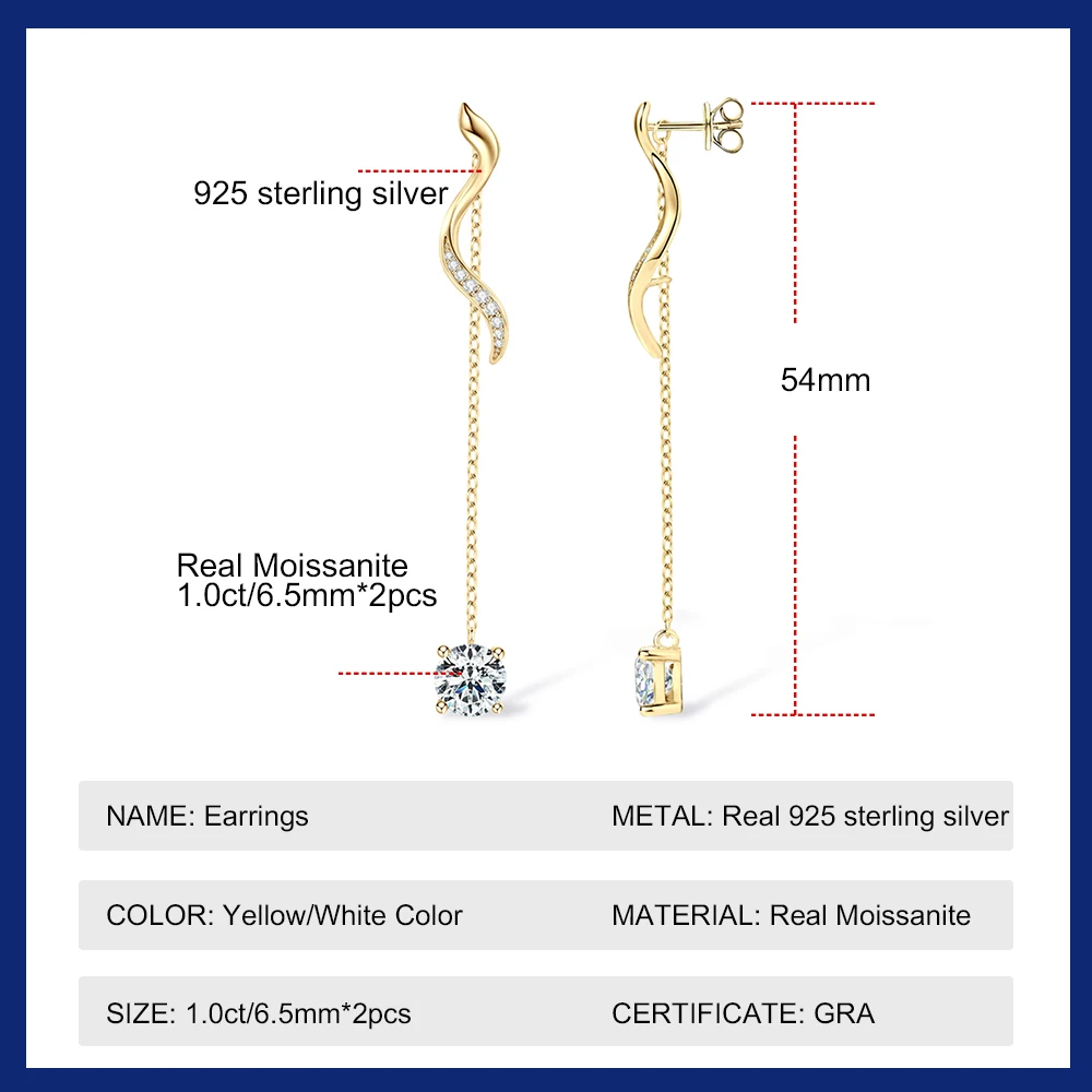 Moissanite Drop Earrings S925 Sterling Silver 1CT Long Tassel Dangle Earring for Women Wedding Jewelry Gifts with GRA