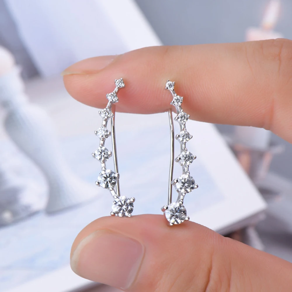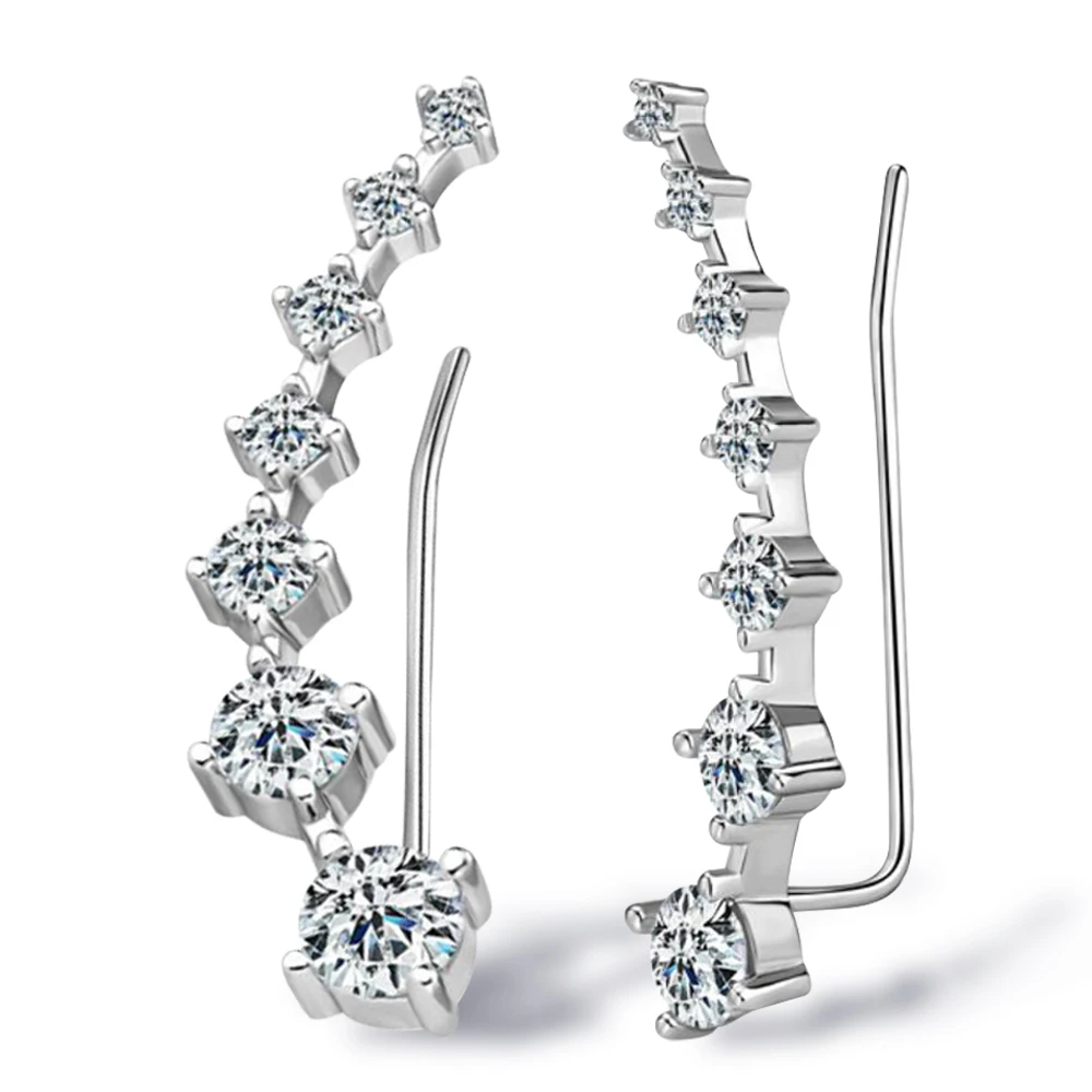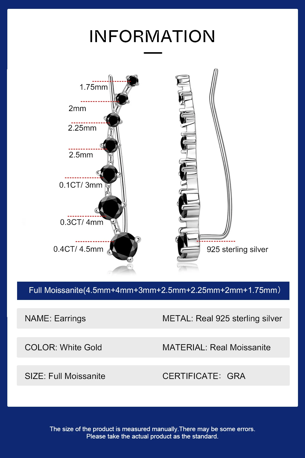 Moissanite Earrings 925 Silver Original Certified 7 Stone Ear Cuffs Full Row Diamond Earring For Women Jewelry