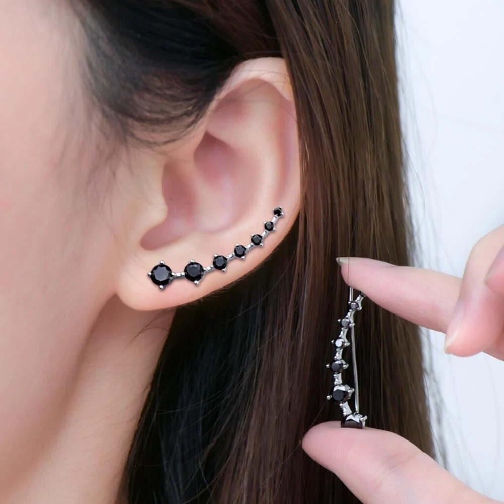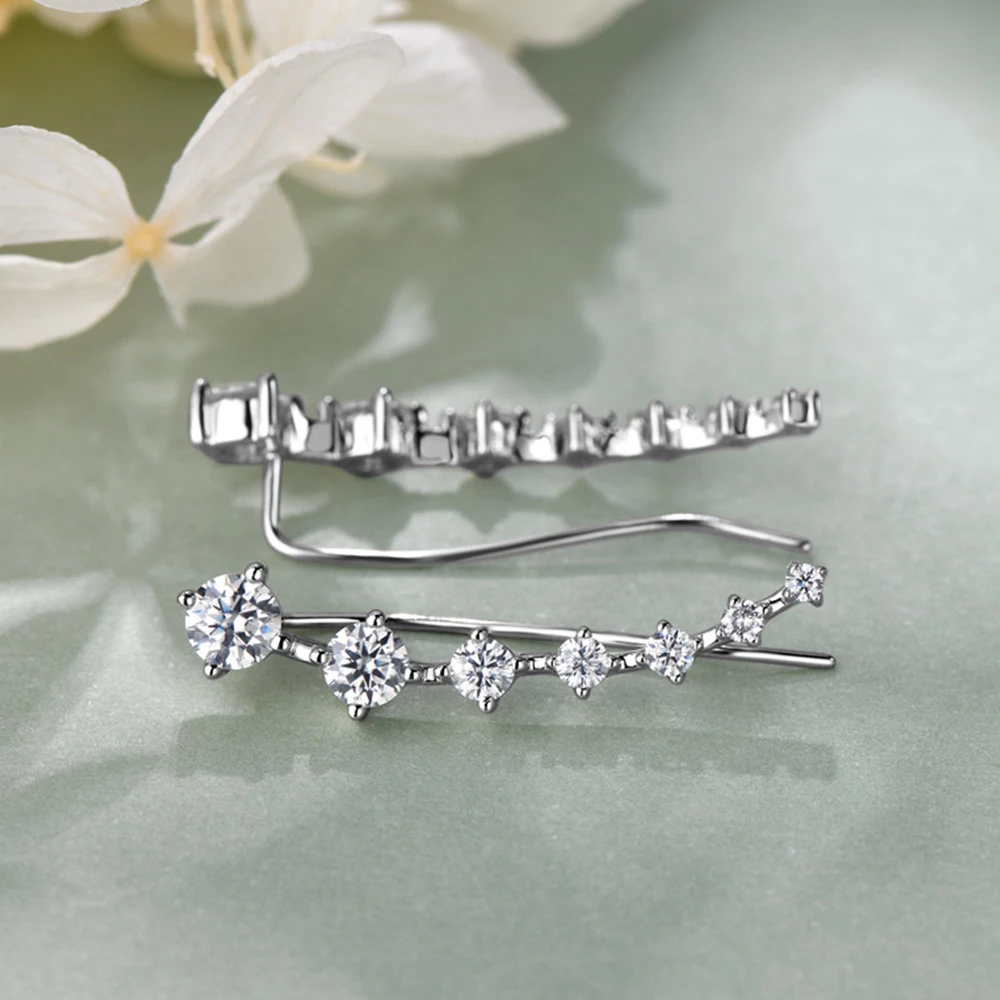 Elevate your jewelry collection with these stunning moissanite ear cuffs, crafted from authentic 925 sterling silver. Featuring seven certified moissanite stones arranged in a full row design, these earrings deliver brilliant sparkle and exceptional clarity that rivals traditional diamonds. The secure ear cuff construction ensures comfortable, all-day wear, while the timeless aesthetic complements both casual and formal occasions. Each stone is carefully selected for quality and brilliance, making these earrings a sophisticated investment piece for the discerning woman who values both elegance and durability.