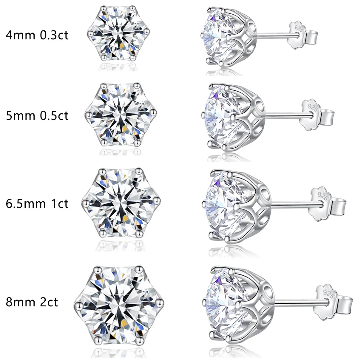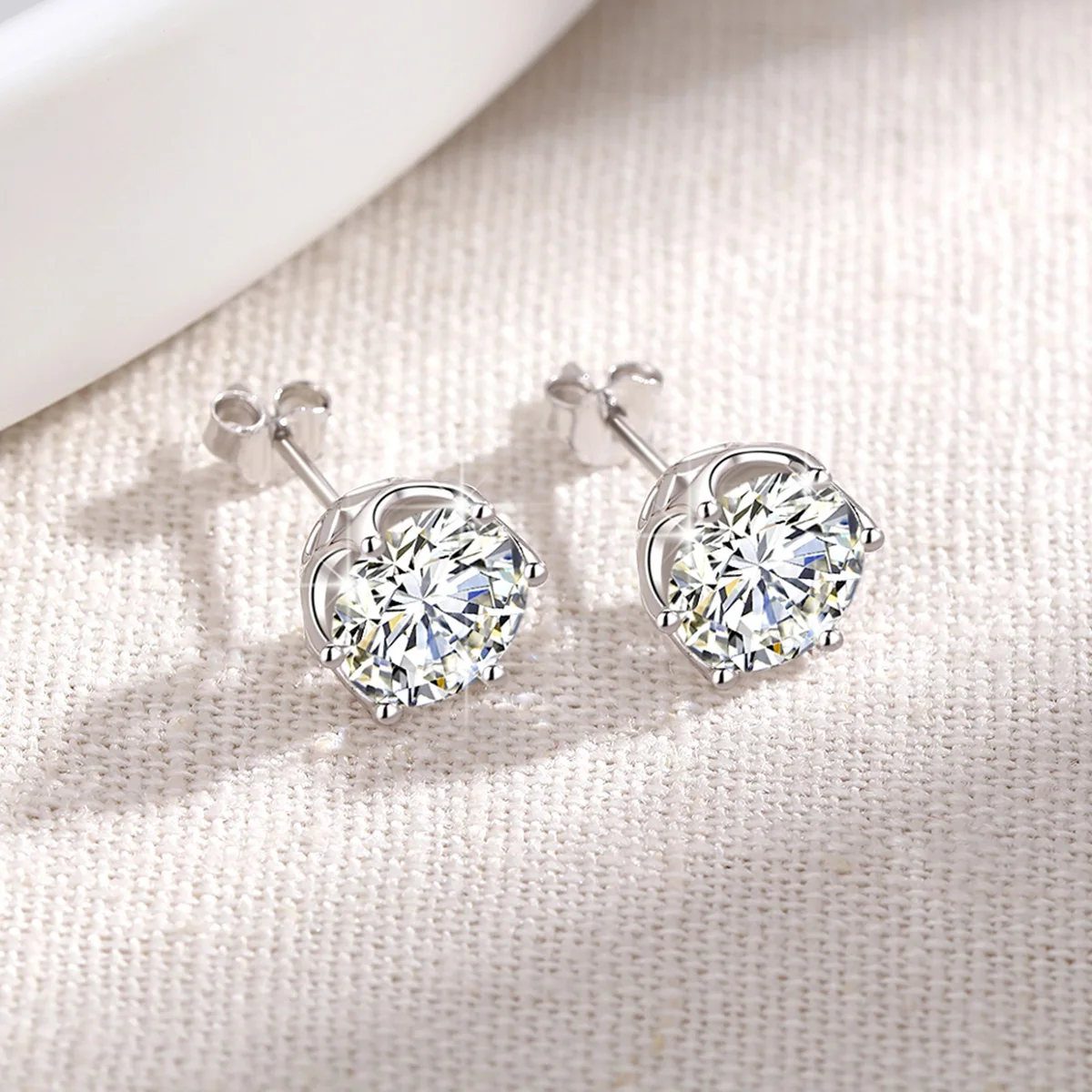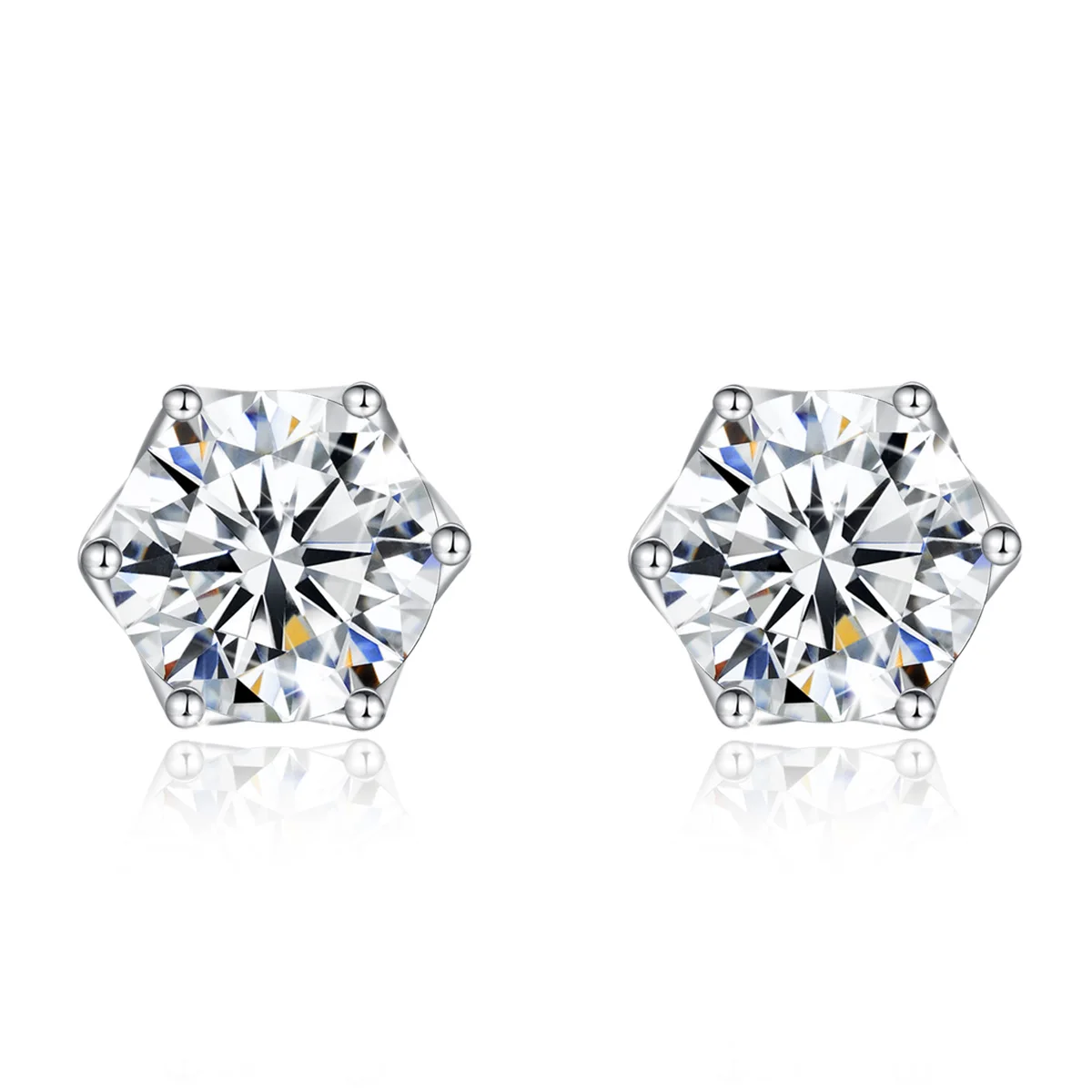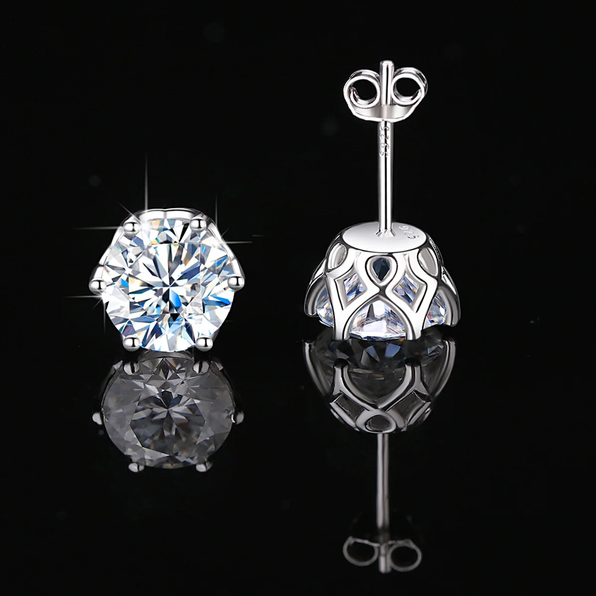 These 925 sterling silver earrings feature classic 6-prong settings that securely hold dazzling moissanite stones certified D color and VVS1 clarity. Designed for lasting elegance, they combine expert craftsmanship with luxurious sparkle, making them a refined choice for everyday wear or special occasions.