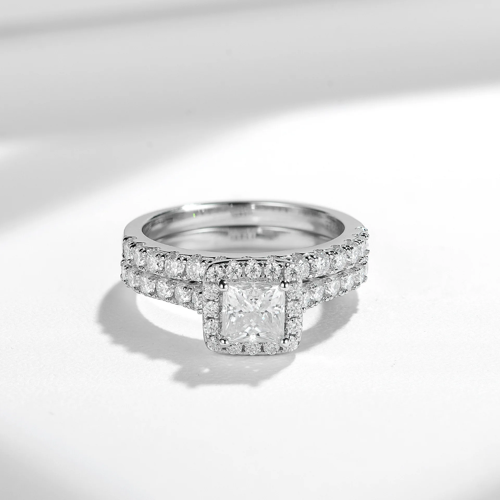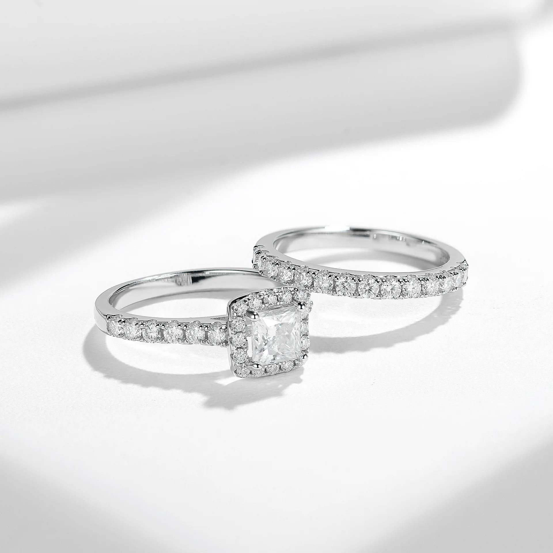 Moissanite Engagement Ring Set For Women 925 Sterling Silver 0.8 Ct Princess Cut Wedding Bands