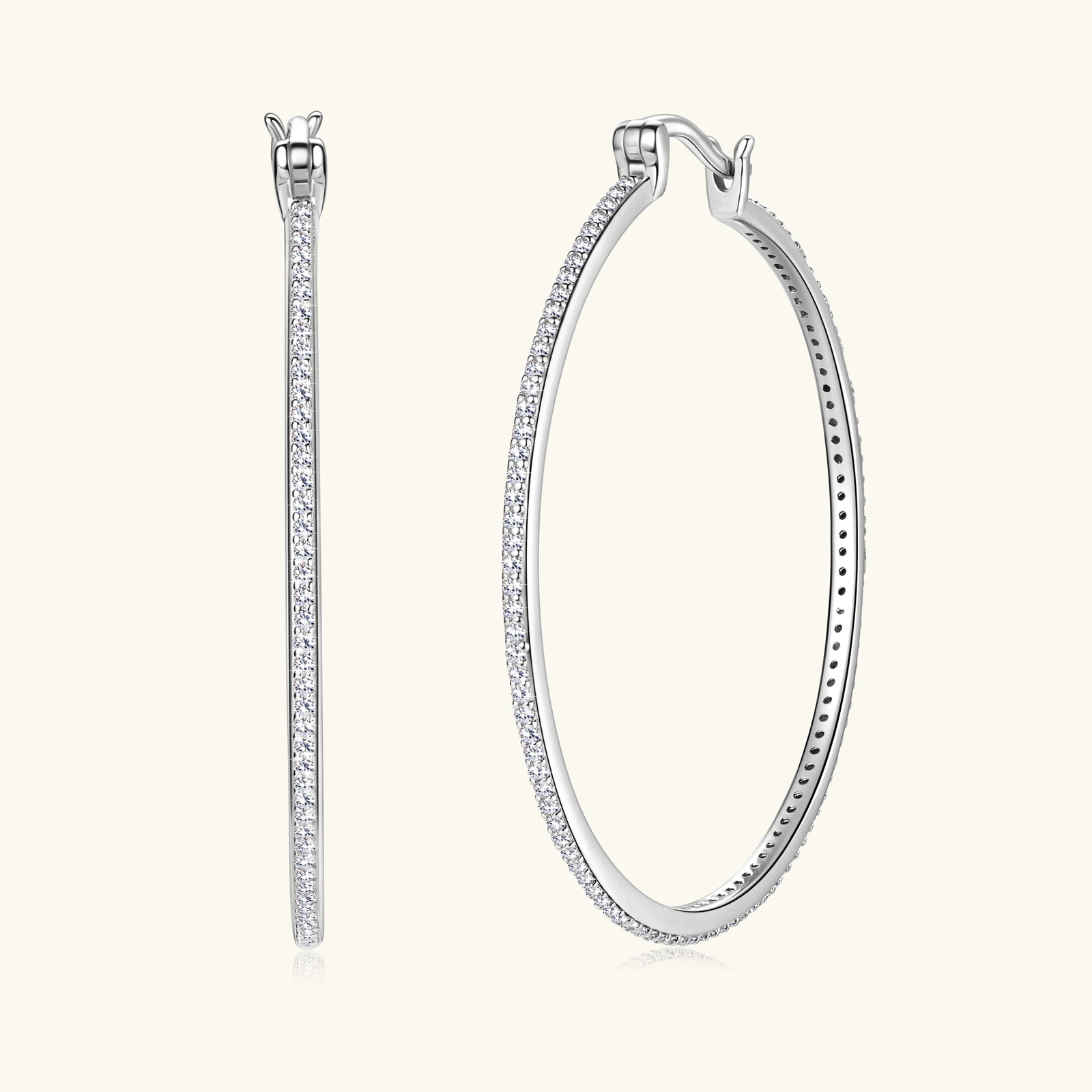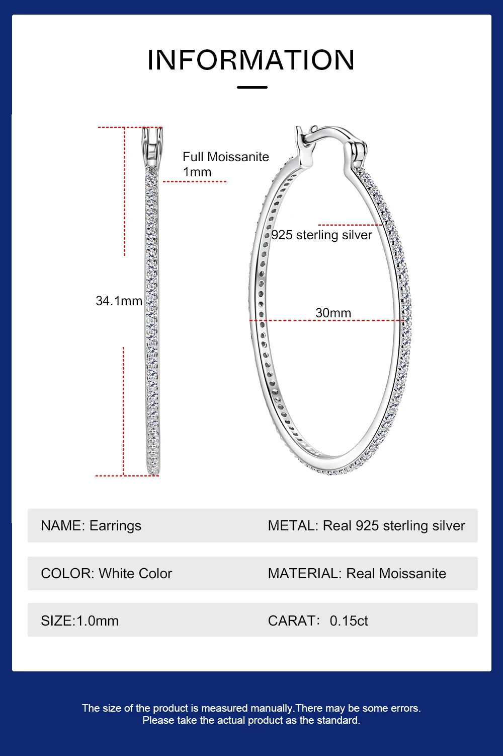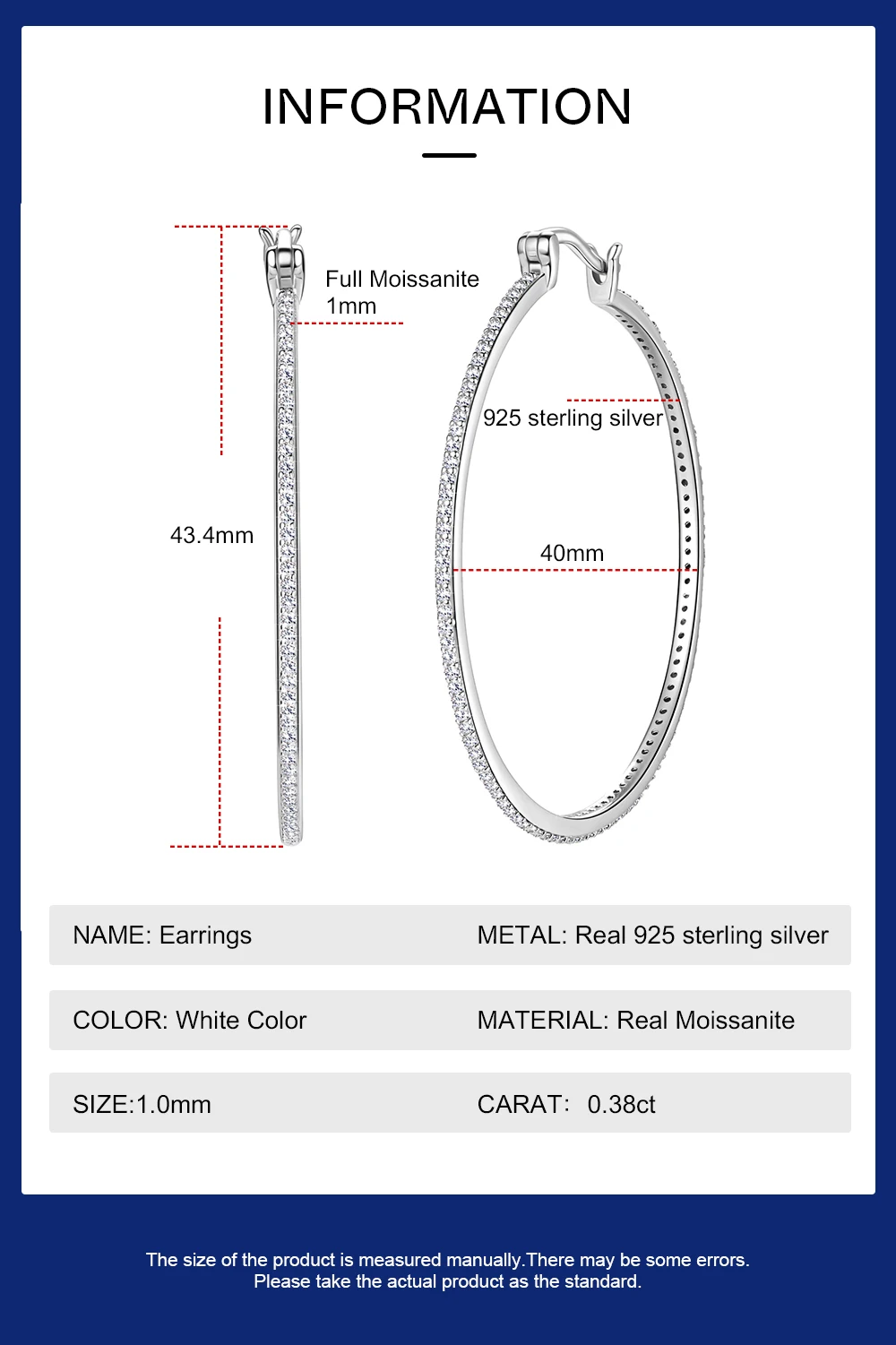 Elevate your jewelry collection with these stunning moissanite hoop earrings, crafted from premium 925 sterling silver and finished with luxurious gold plating. Featuring brilliant moissanite stones that rival diamonds in sparkle and clarity, these 30/40MM huggie hoops deliver maximum impact with their generous size and secure fit. The hypoallergenic construction makes them ideal for sensitive skin, while the substantial weight and polished design create an undeniably sophisticated look. Perfect for everyday wear or special occasions, these versatile statement earrings combine timeless elegance with modern durability.