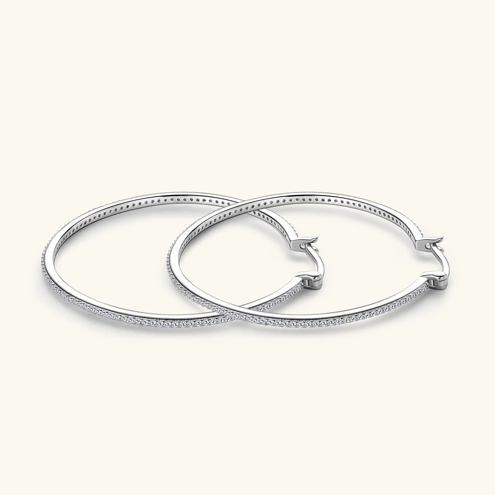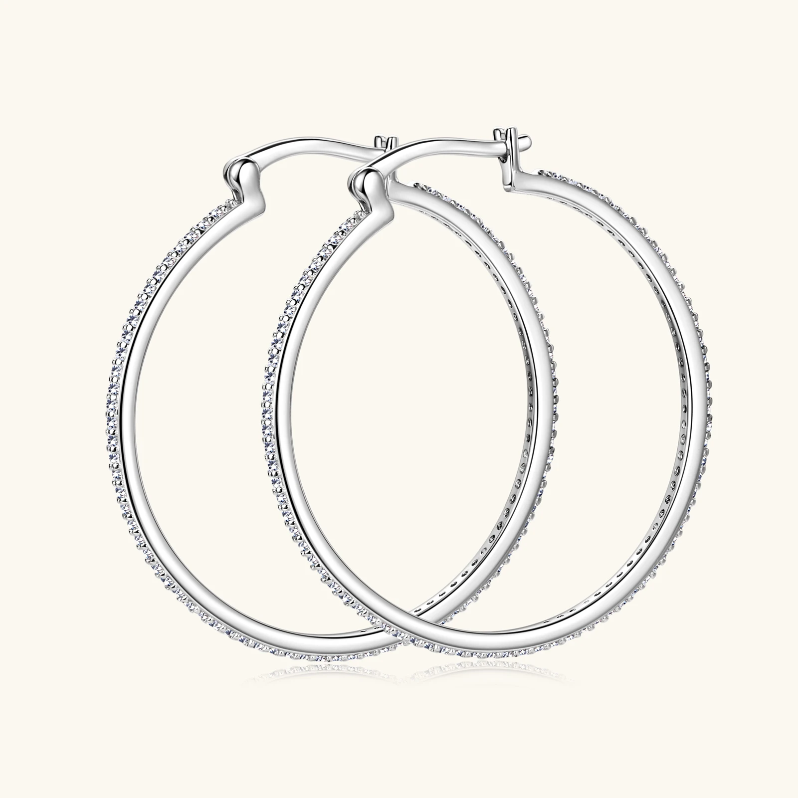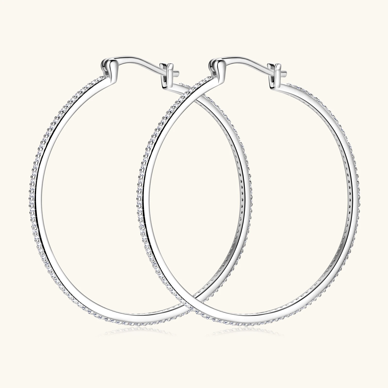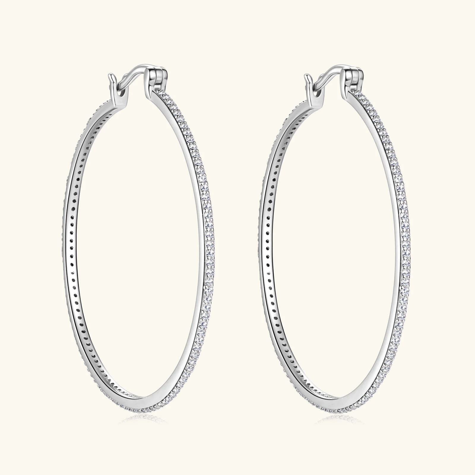 Elevate your jewelry collection with these stunning moissanite hoop earrings, crafted from premium 925 sterling silver and finished with luxurious gold plating. Featuring brilliant moissanite stones that rival diamonds in sparkle and clarity, these 30/40MM huggie hoops deliver maximum impact with their generous size and secure fit. The hypoallergenic construction makes them ideal for sensitive skin, while the substantial weight and polished design create an undeniably sophisticated look. Perfect for everyday wear or special occasions, these versatile statement earrings combine timeless elegance with modern durability.