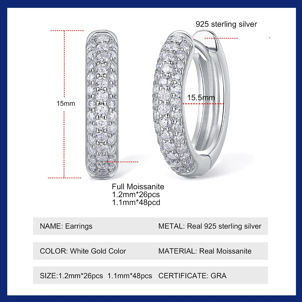 Moissanite Hoop Earrings for Women 18K Real Gold Plated Sterling Silver Hypoallergenic Lab Created Diamond Huggie Earrings