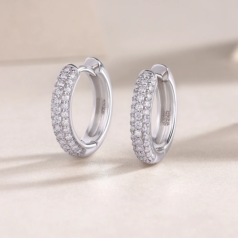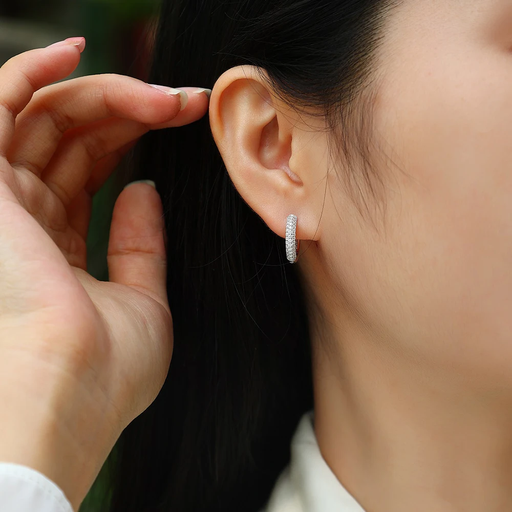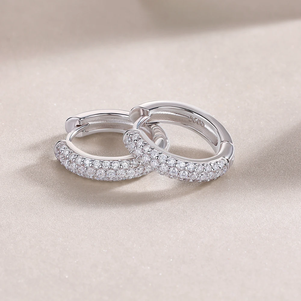 Experience refined luxury with these moissanite huggie earrings, engineered from hypoallergenic sterling silver and finished with authentic 18K gold plating. Each pair showcases lab-created moissanite stones—a superior alternative to traditional diamonds, offering comparable brilliance and durability at a fraction of the cost. The close-hugging design provides secure, all-day comfort while maintaining an understated elegance. Perfect for those with sensitive ears, these earrings combine expert craftsmanship with practical wearability, making them an essential addition to any jewelry collection.