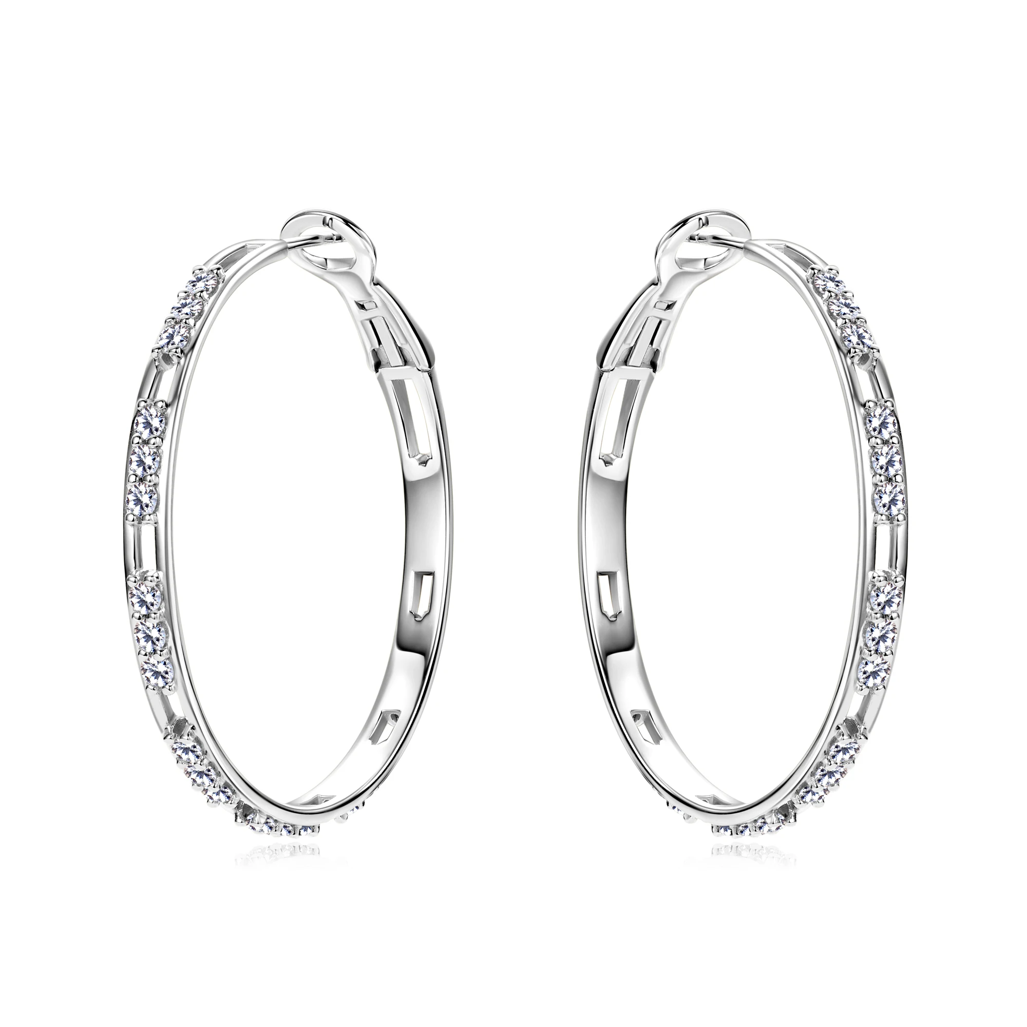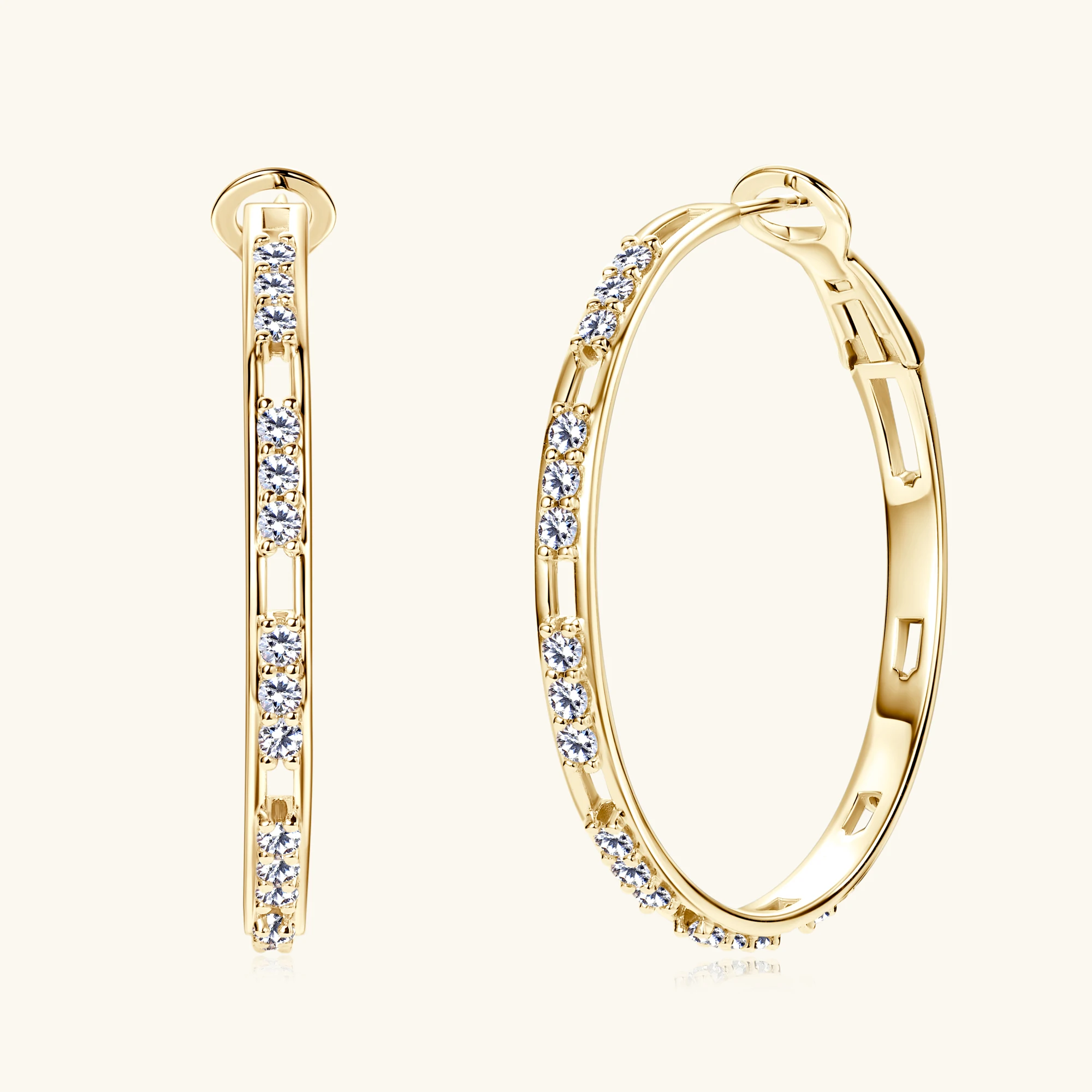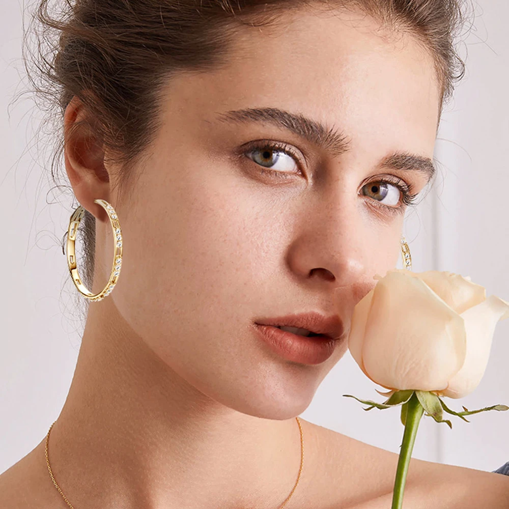 These moissanite huggie hoops represent a sophisticated fusion of quality materials and thoughtful design. Constructed from 925 sterling silver with 18K white gold plating, they deliver a polished aesthetic that complements any wardrobe. The 41MM diameter provides substantial visual impact without overwhelming the face, while the secure huggie mechanism ensures reliable wear throughout your day. Moissanite gemstones exhibit remarkable brilliance and longevity, making them a practical alternative to traditional diamonds. Hypoallergenic properties protect sensitive skin, allowing comfortable extended wear. These versatile earrings seamlessly transition between professional and social settings, offering lasting value for those who appreciate quality jewelry.