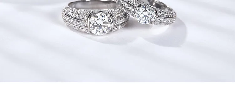 Moissanite Men Ring S925 Silver Round 2 Carat Plated Gold Ring Engagement Jewelry