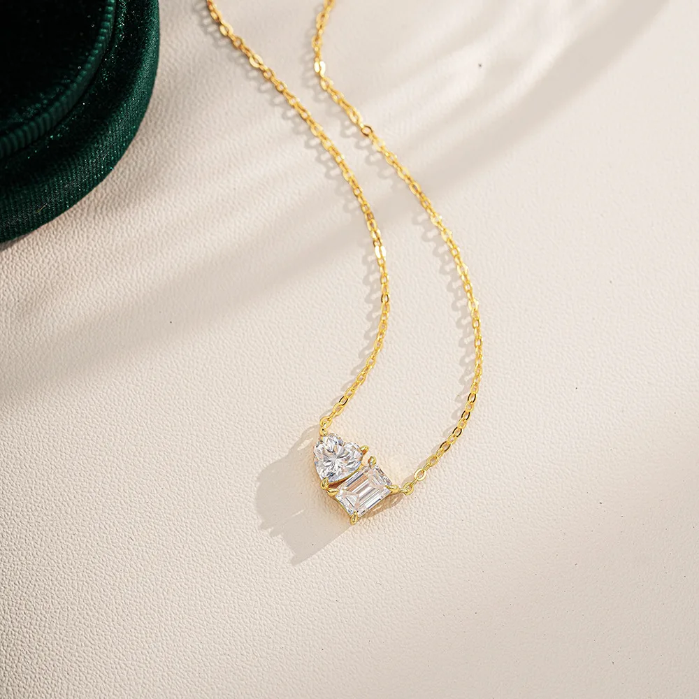 Moissanite Necklace 18k Gold 2ct for Women Super Flash Candy Cube Love Collarbone Chain Pendant Sweet Cute Light Luxury