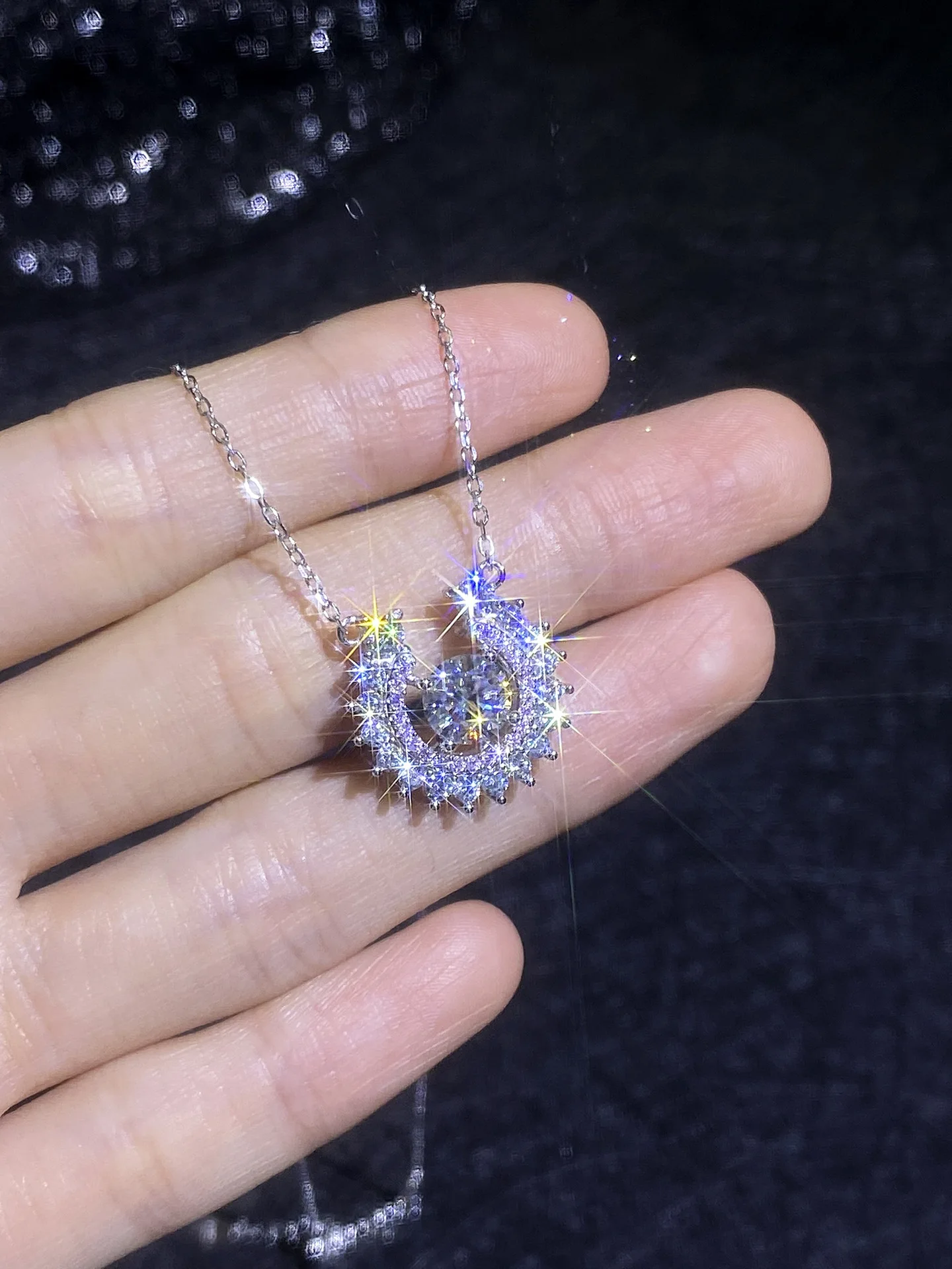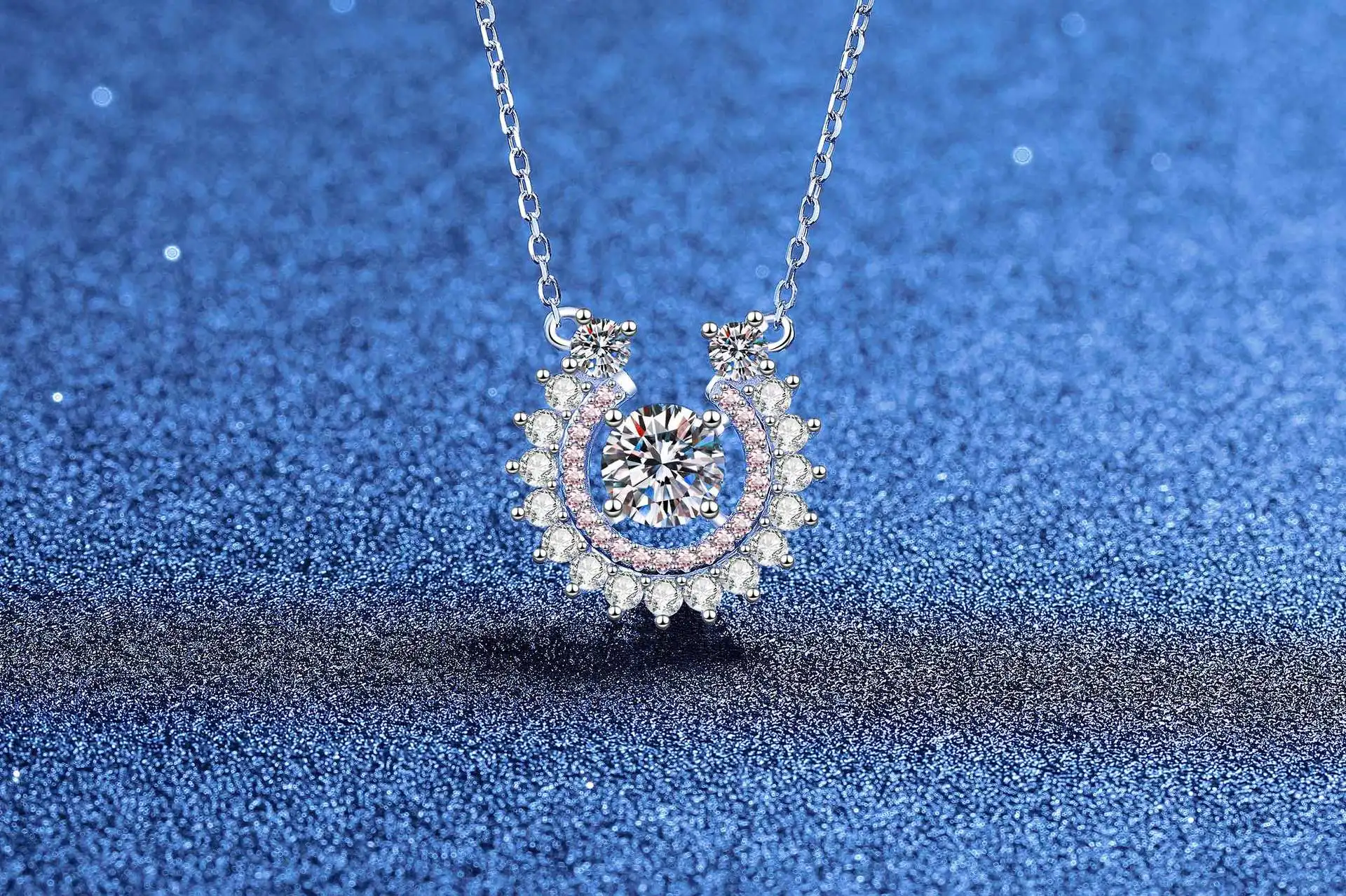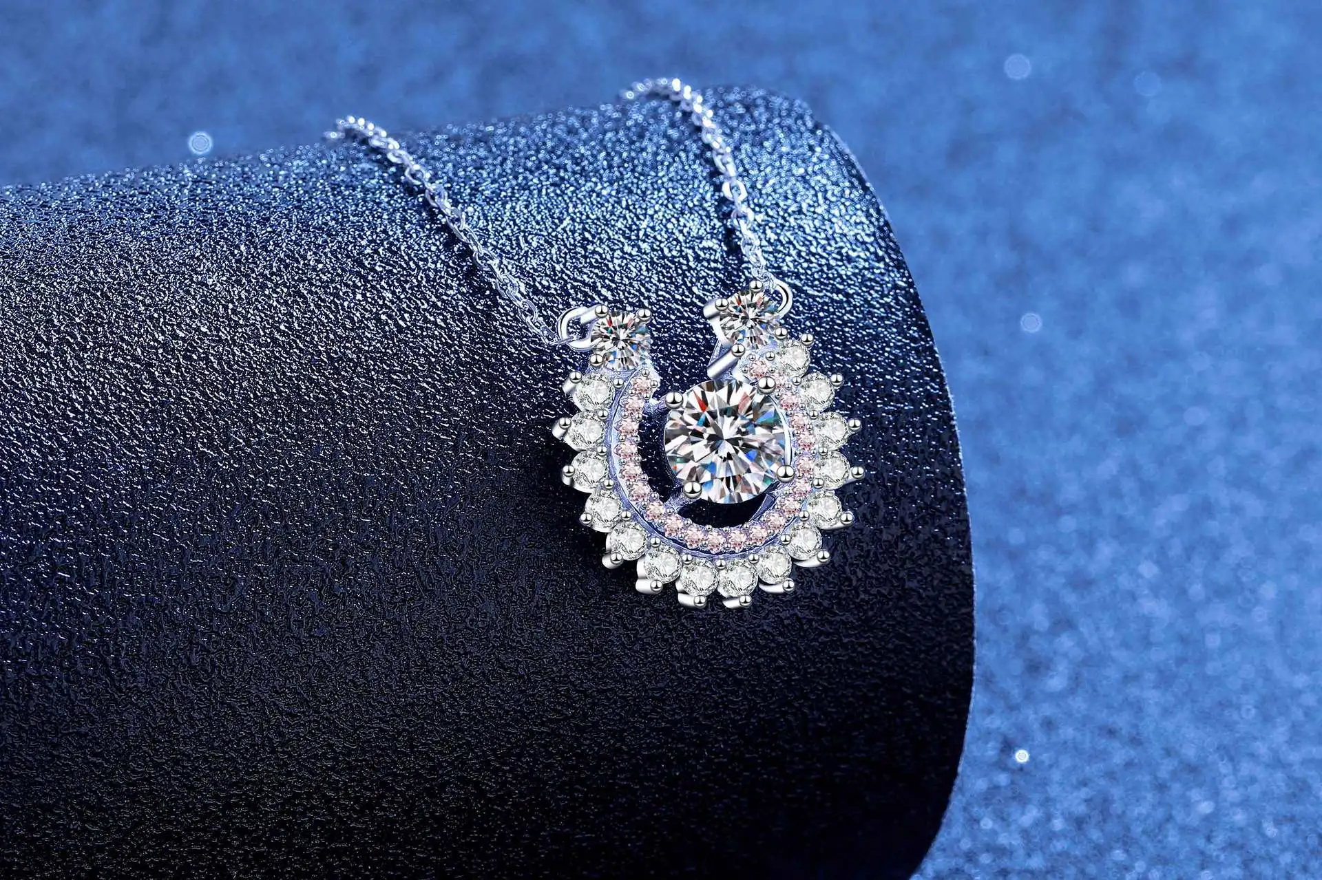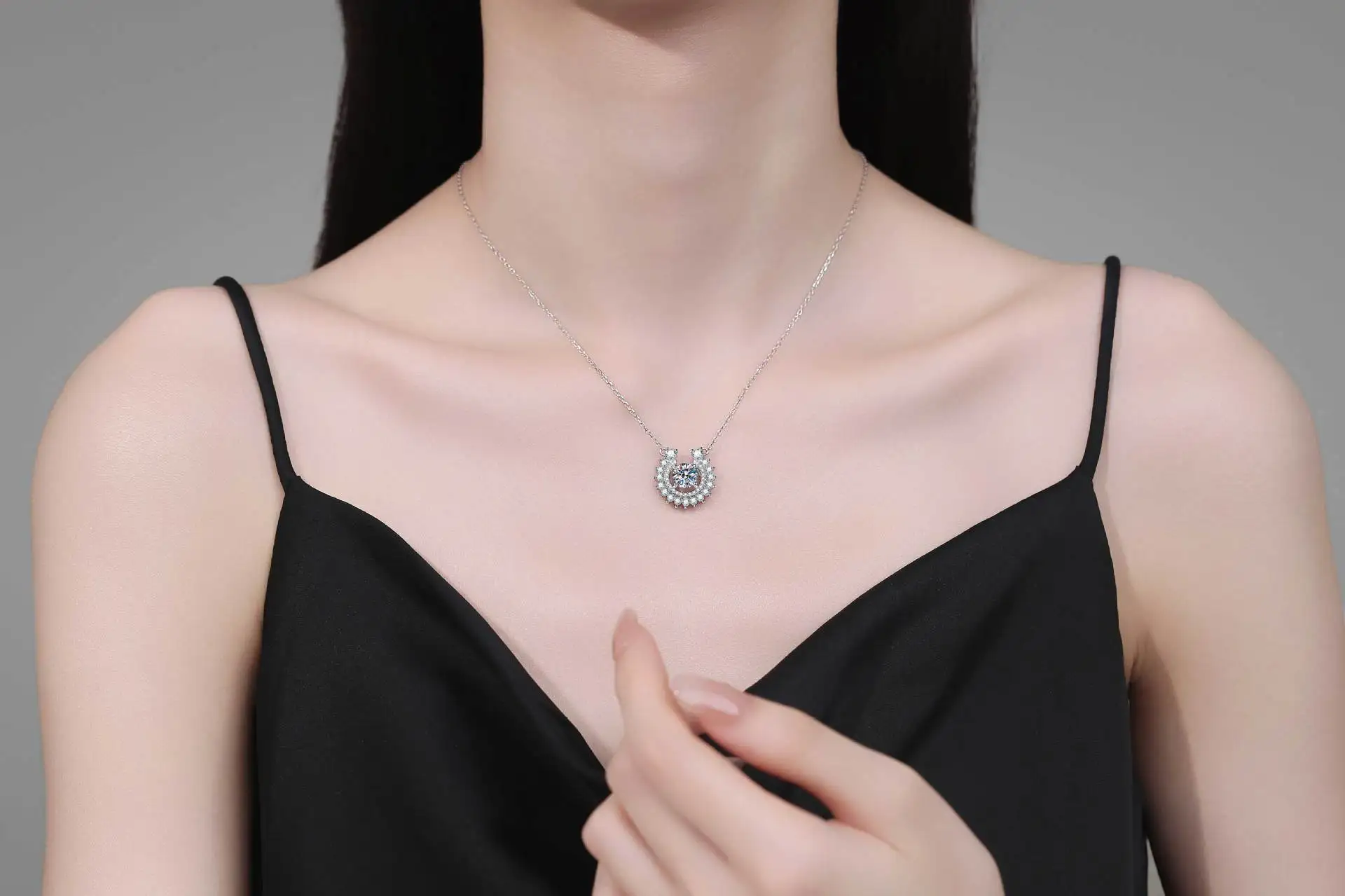 Dare to stand out with this striking PT950 horseshoe pendant necklace, where moissanite brilliance meets bold platinum craftsmanship. The U-shaped design radiates with full diamond coverage, catching light from every angle for maximum impact. Versatile enough for everyday wear yet luxurious enough to command attention at any occasion, this piece transforms any look into a statement. Perfect for the woman who refuses to blend in—a daring choice that celebrates confidence and sophistication.