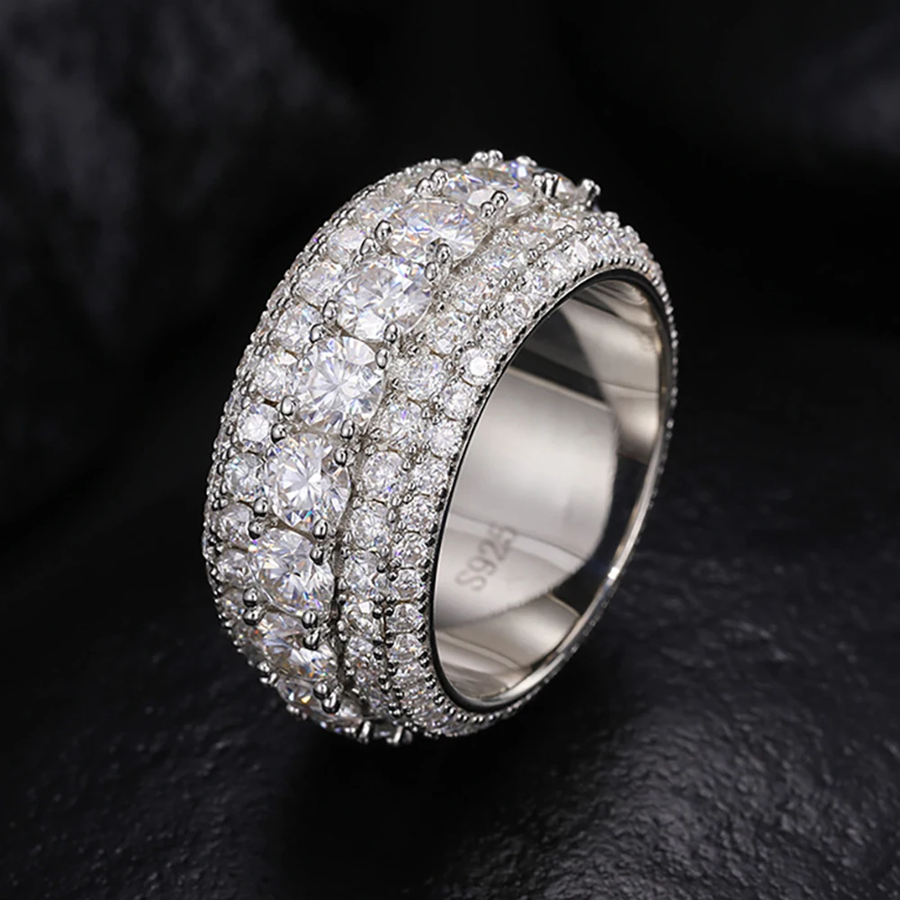 • Name: S925 Silver Inlaid 4mm Full Moissanite HipHop Rings