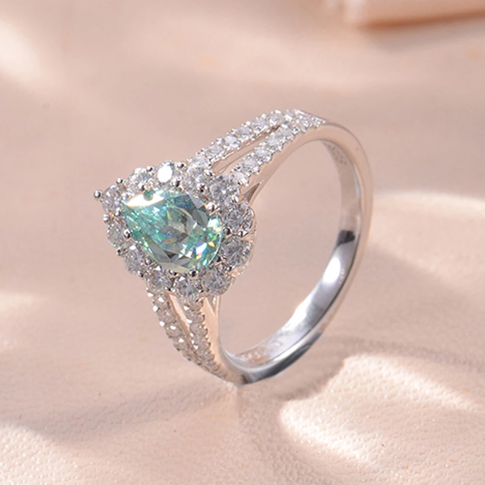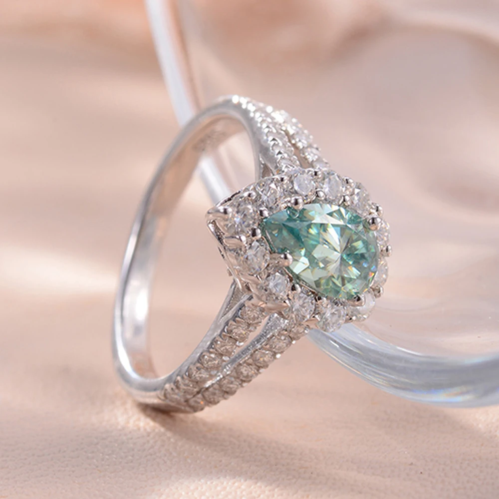 • Style: Classic,Pear Cut Shaped Green Moissanite Rings