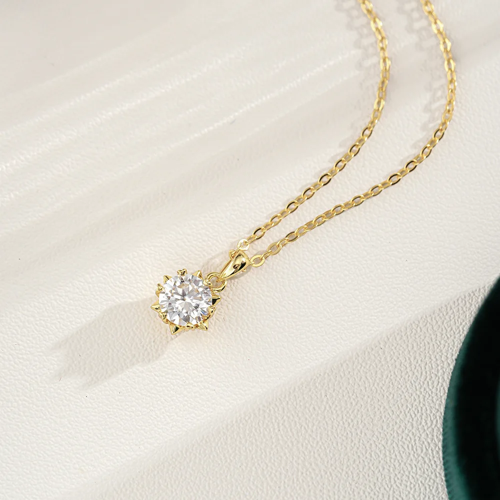 Moissanite Solitaire Pendant in 14k Yellow Gold 1ct Diamond Minimalist Fine Jewelry Necklace for Women Classic Snowflakes