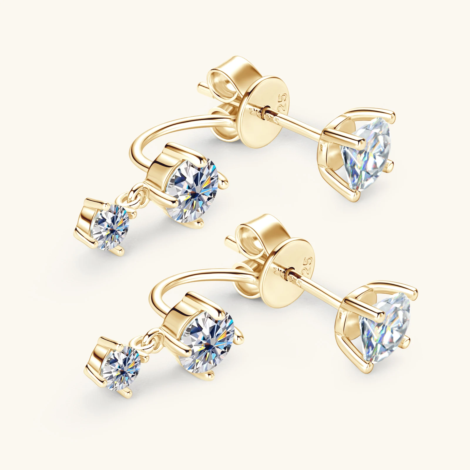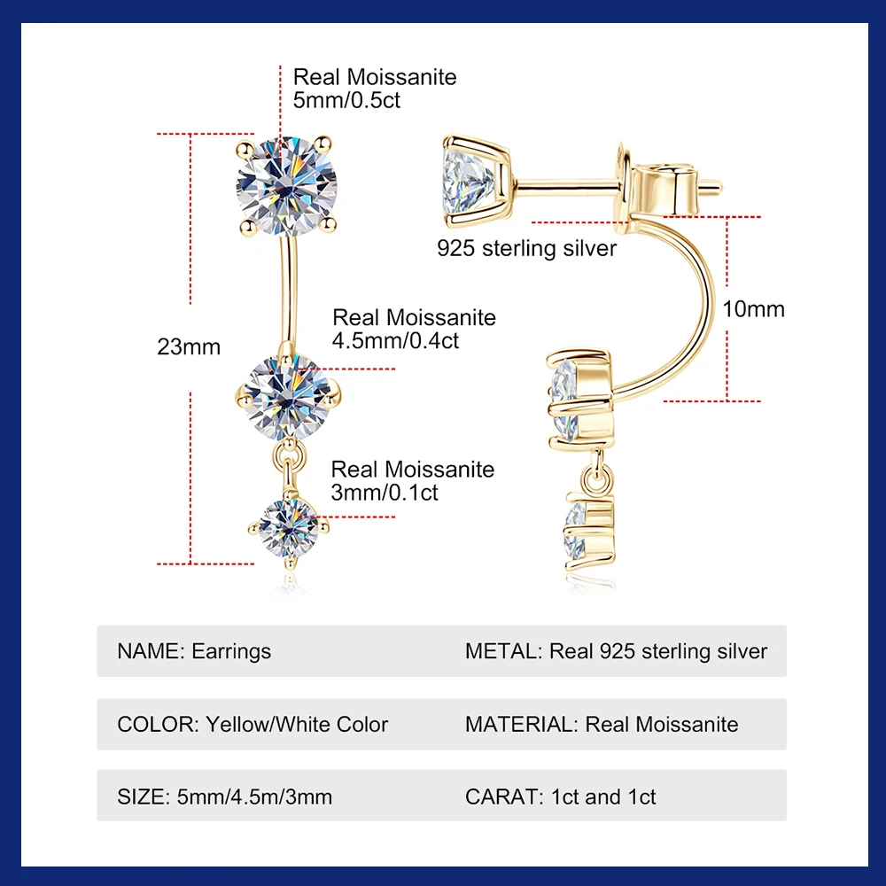 Moissanite Size: 5mm*2pcs/4.5mm*2pcs/3mm*pcs