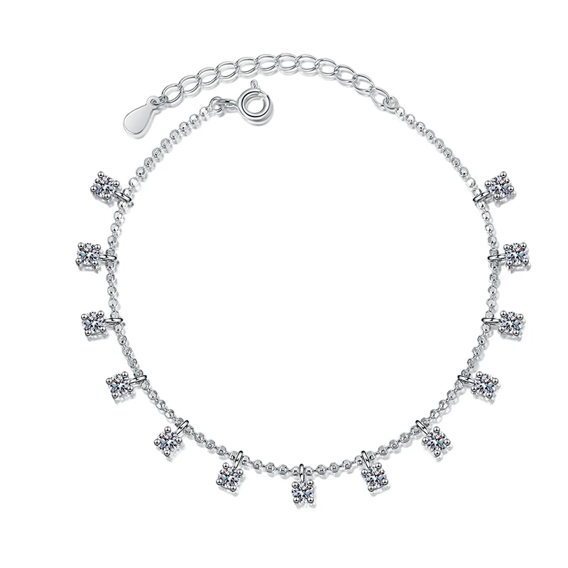 This exquisite moissanite tennis bracelet showcases the perfect blend of luxury and value. Crafted from authentic S925 sterling silver, it features D color moissanite stones totaling 1.3 to 3.9 carats, offering exceptional optical properties and fire comparable to fine diamonds. The continuous tennis bracelet design is complemented by an elegant tassel detail, creating a refined aesthetic suitable for both formal occasions and refined everyday wear. Each stone is GRA certified, guaranteeing authenticity and quality standards. The secure silver chain ensures durability and longevity, making this a timeless investment piece that radiates sophistication and brilliance on any wrist.