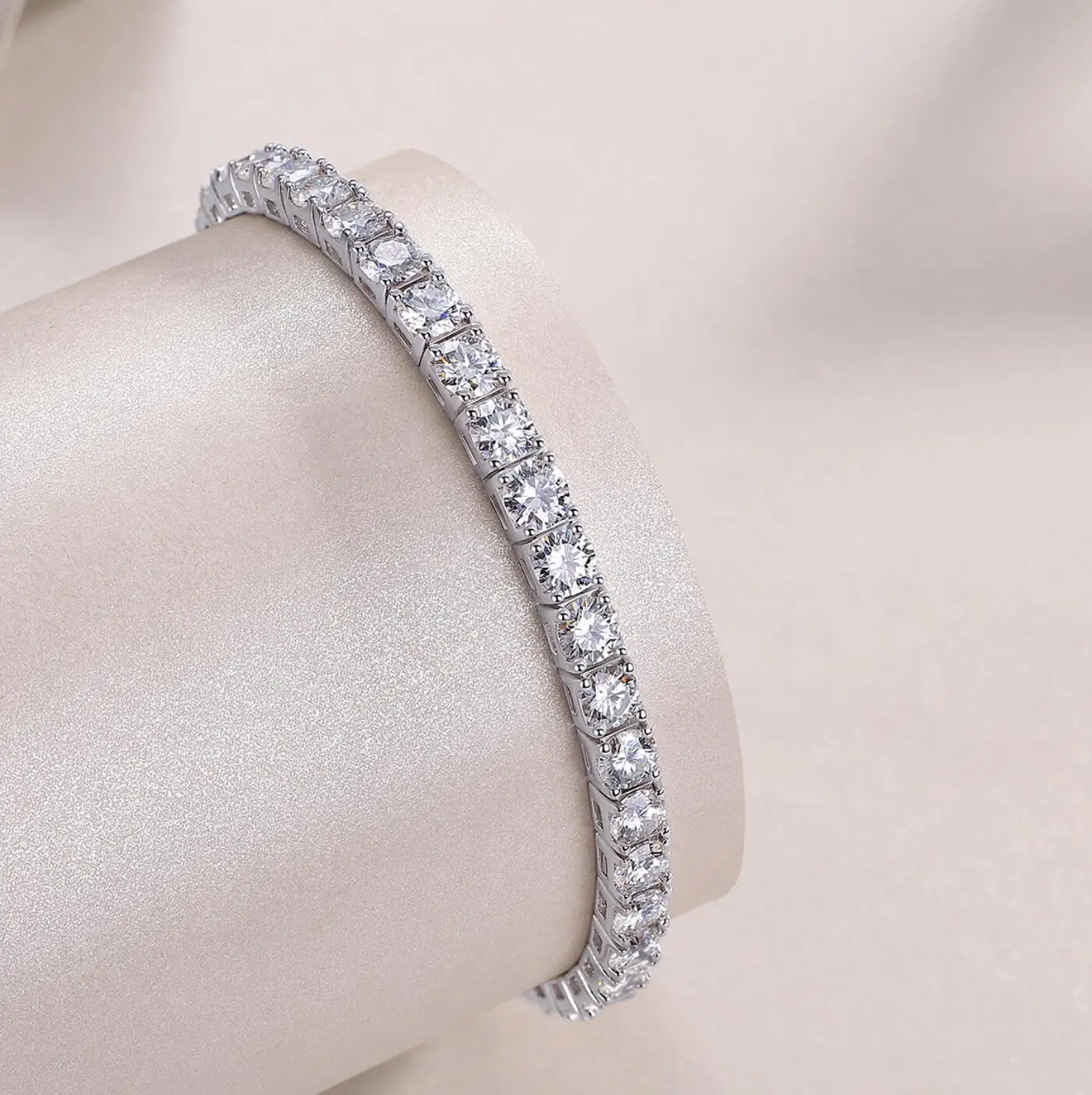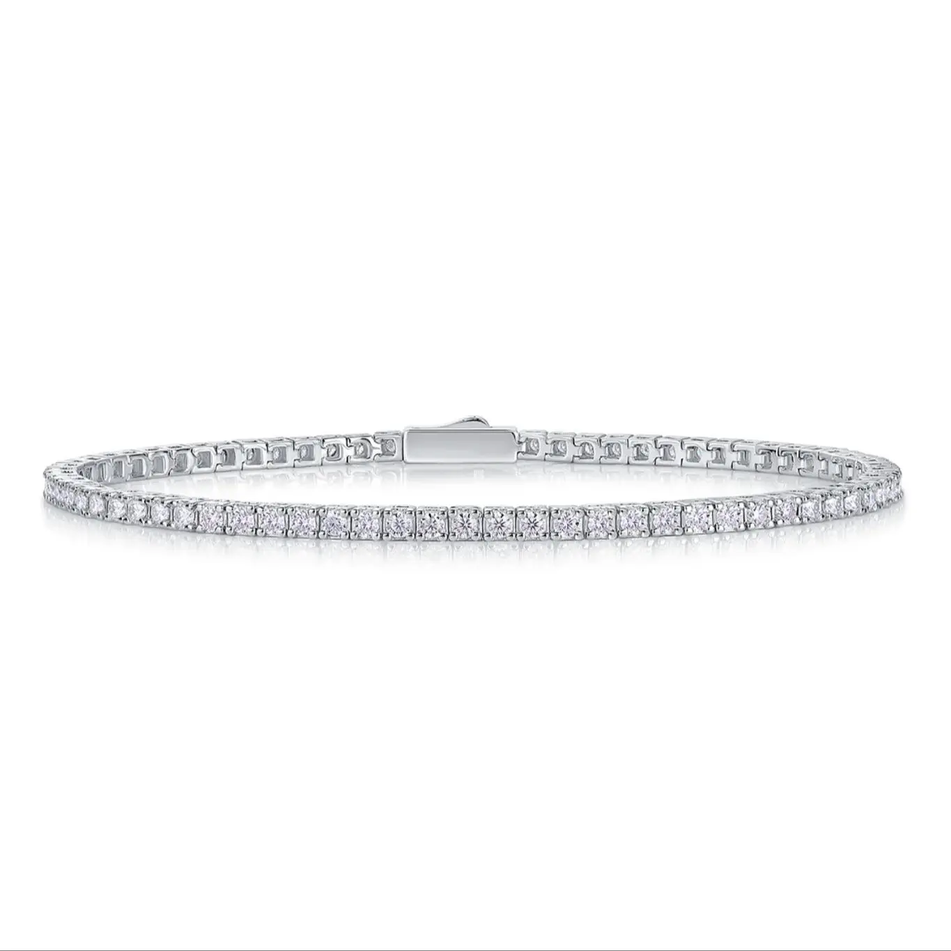 Add a touch of luxury to your outfit with our Moissanite Tennis Bracelet! Made with lab grown diamonds and plated in 18K white gold, this bracelet will make you feel like a queen (or king). Perfect for any occasion, dazzle your friends and loved ones with this stunning piece.