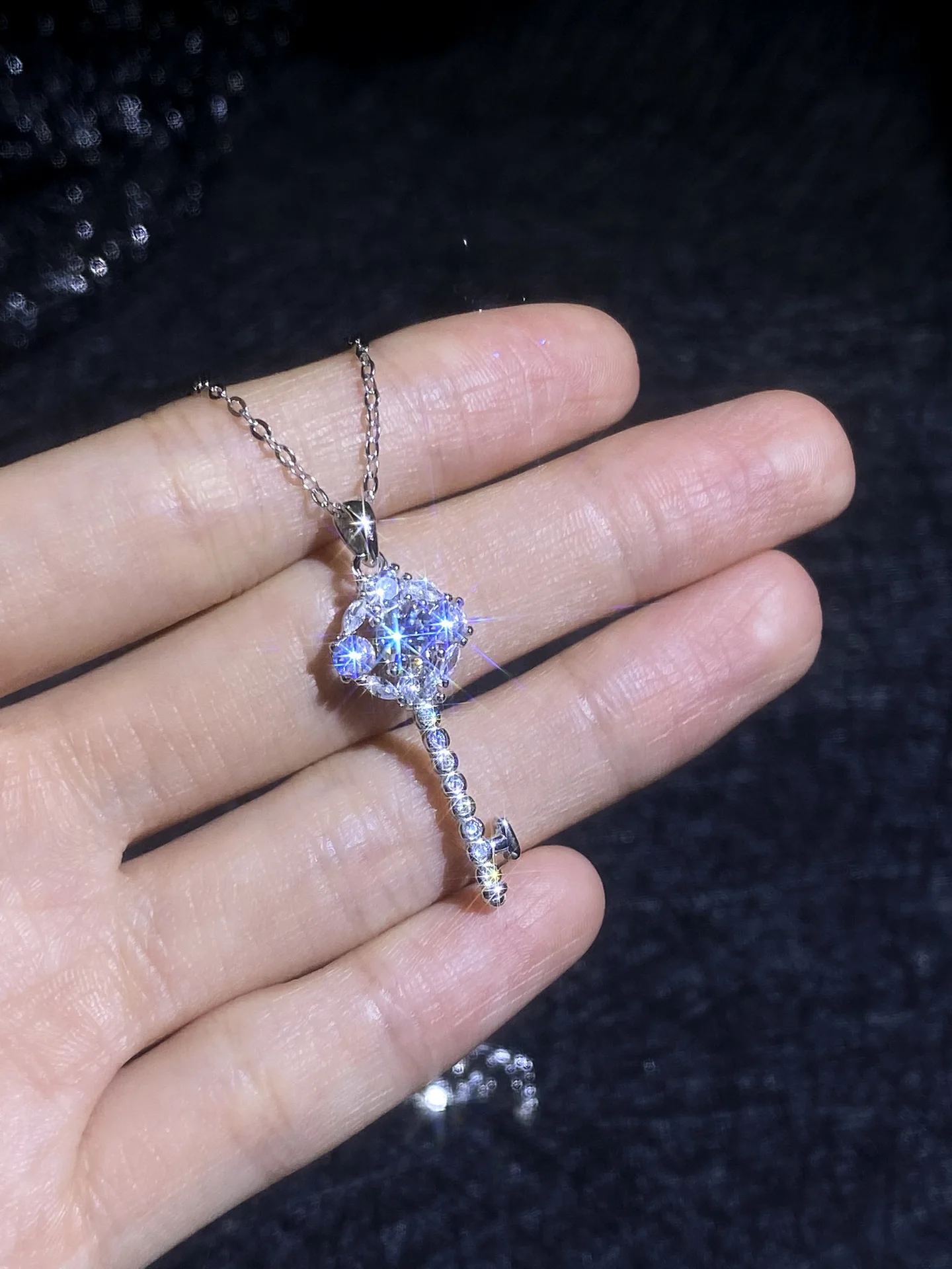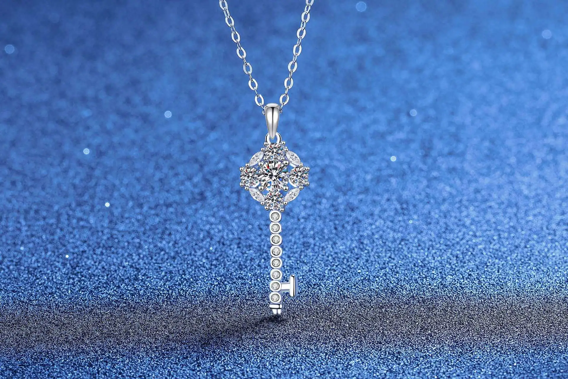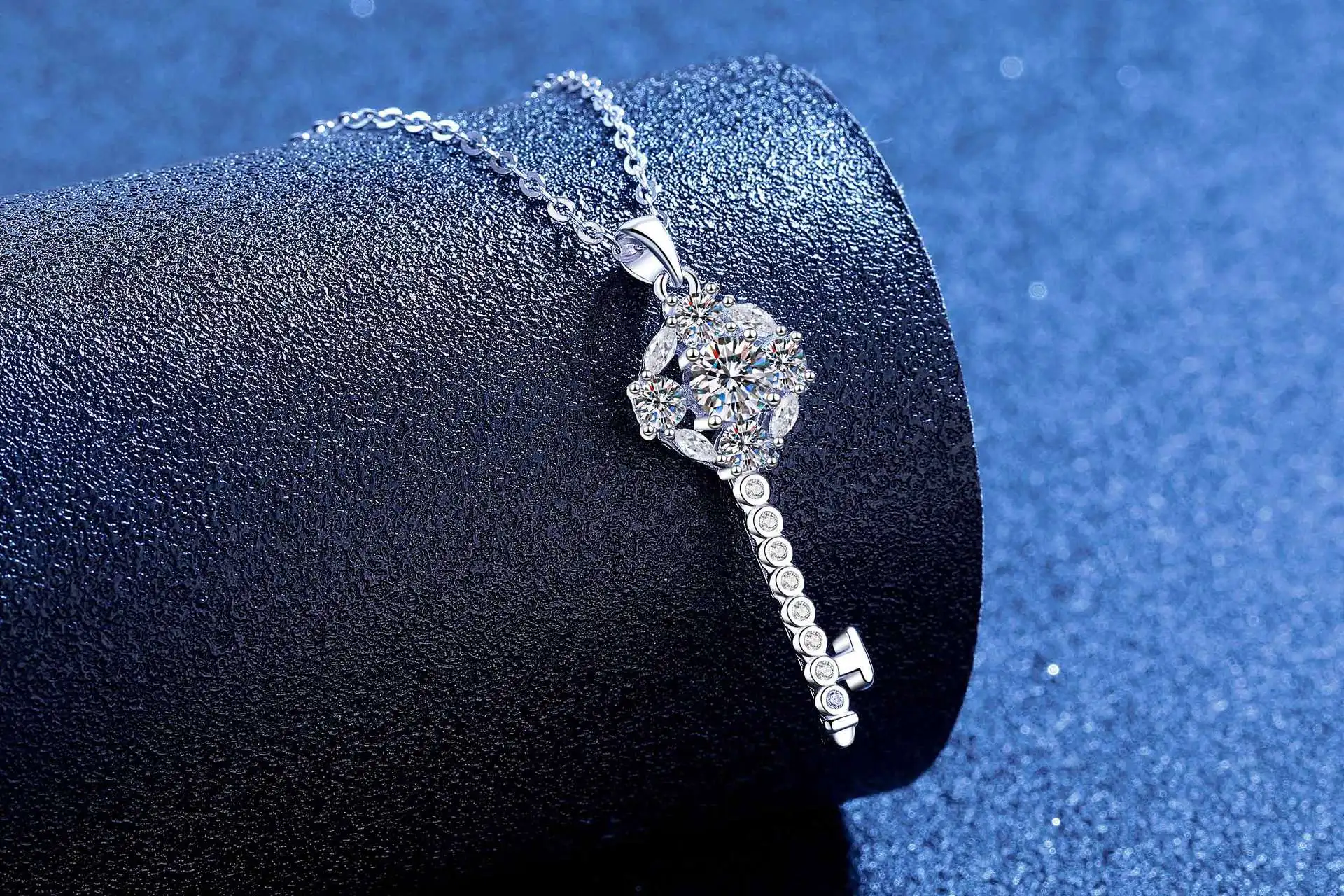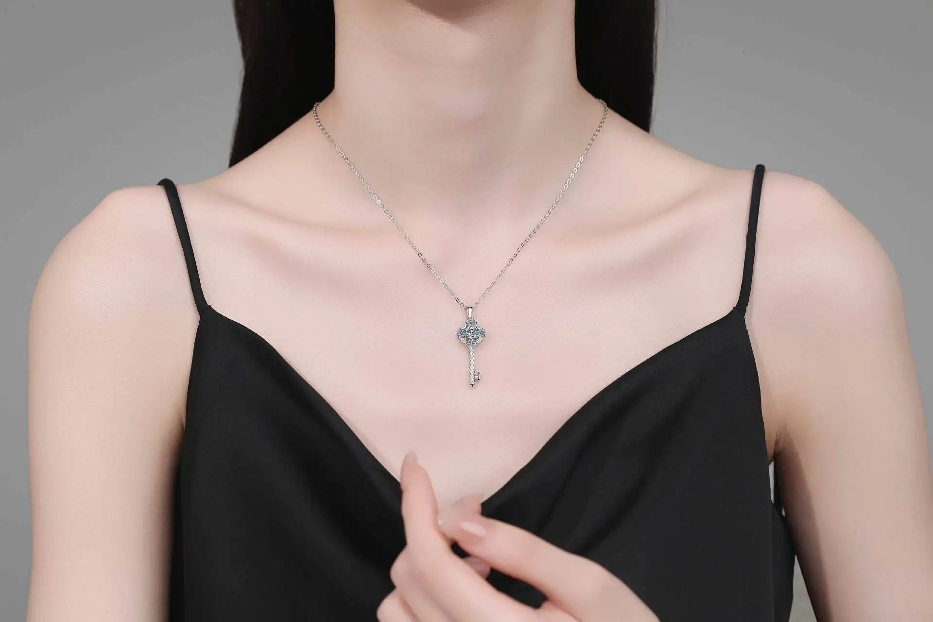Discover timeless sophistication with this exquisite PT950 platinum sunflower key necklace, a Korean fashion essential that gracefully drapes along your collarbone. Each piece showcases a charming sunflower key pendant brilliantly accented with moissanite stones that sparkle with radiant beauty. Crafted from premium platinum, this necklace offers durability and luxury that will accompany you through life's most cherished moments. The thoughtfully designed collarbone length creates an elegant focal point that enhances your natural grace. Whether you're seeking a meaningful gift or a personal treasure, this necklace celebrates your distinctive style and appreciation for fine craftsmanship.