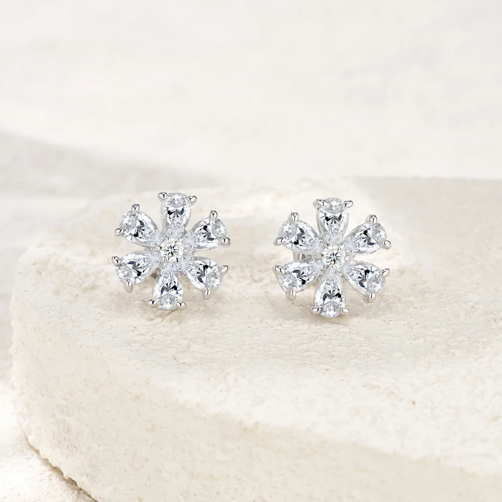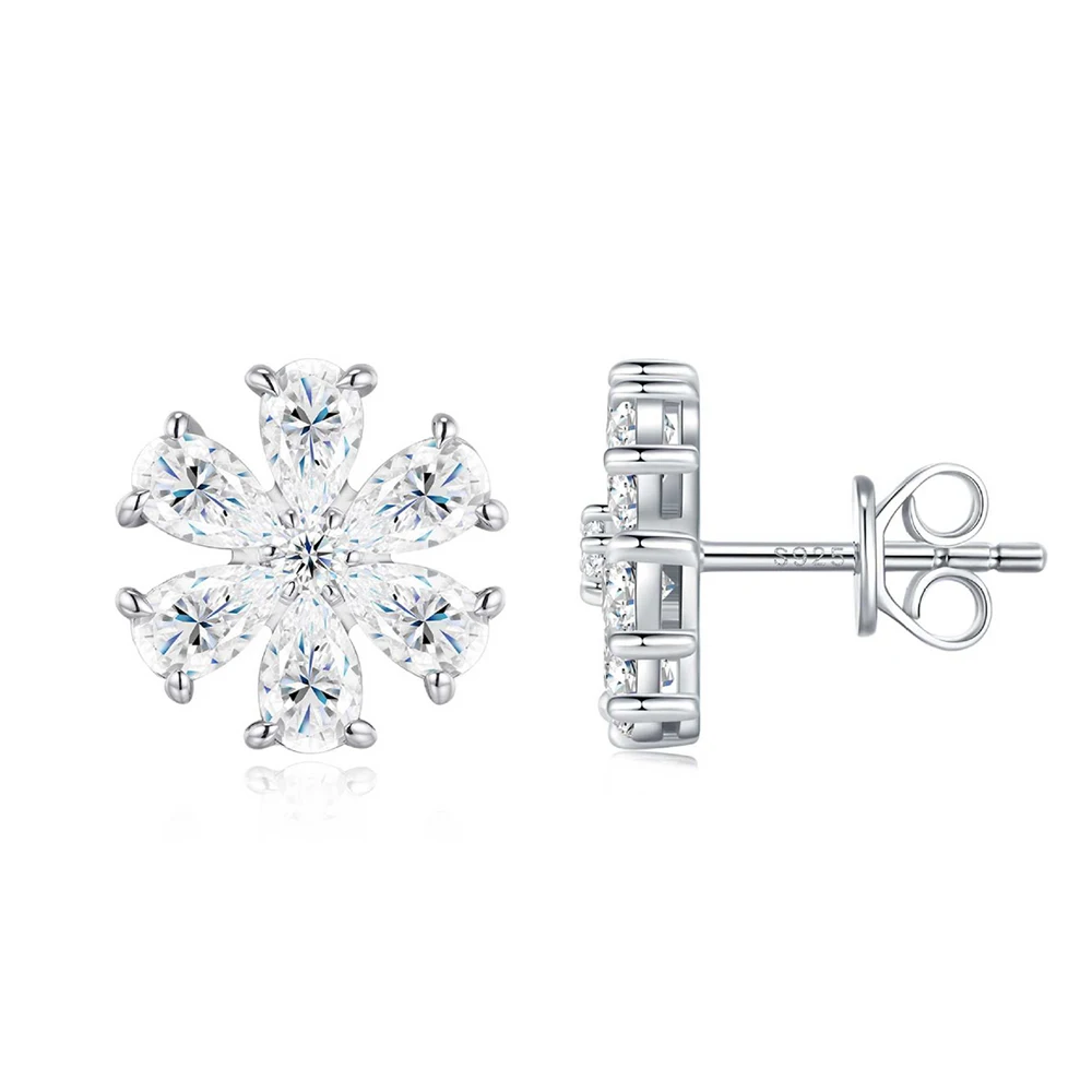 Pear Cut All Moissanite Stud Earrings for Women GRA Certified Flowers Shape Diamond Earrings S925 Silver Jewelry Gift