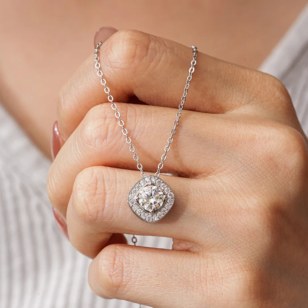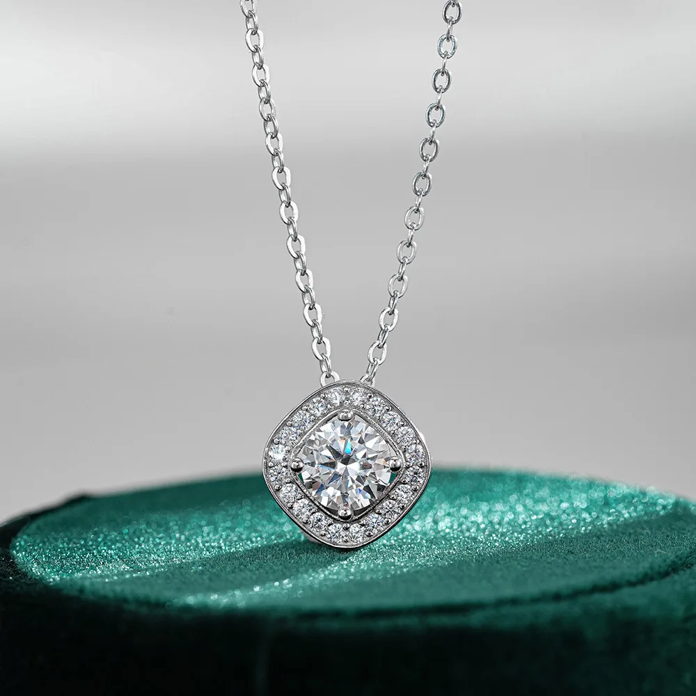 Pendant 1ct Diamond Moissanite 18k White Gold Necklace Women's T-home Square Platinum Pt950 Accessories Wedding Fine Jewelry