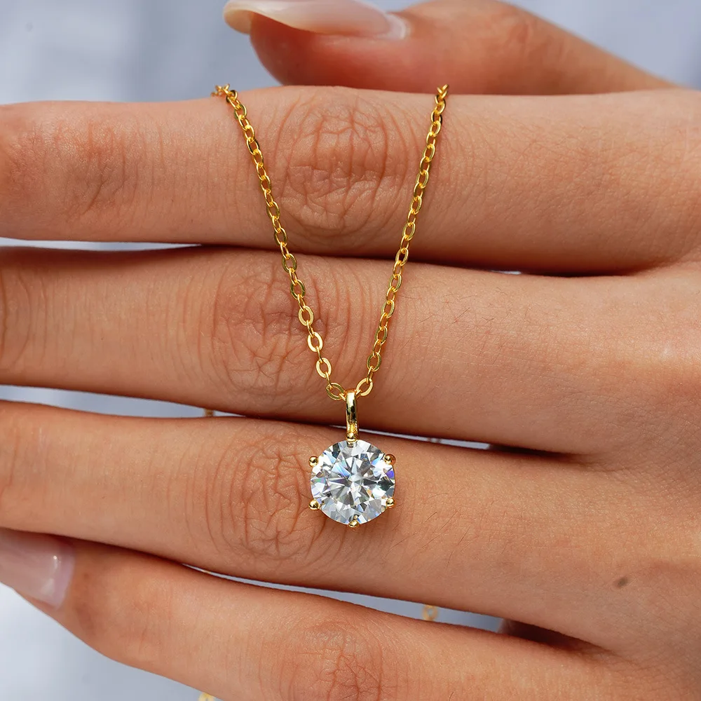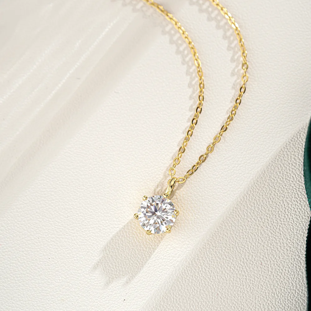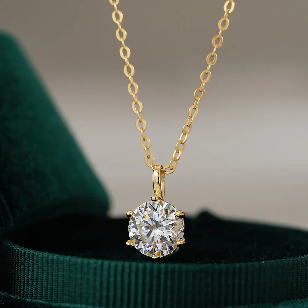 Pendant for Women 0.5ct/1ct/2ct/3ct Six-claw 14K Gold Moissanite Necklace Wedding Band Fine Jewelry