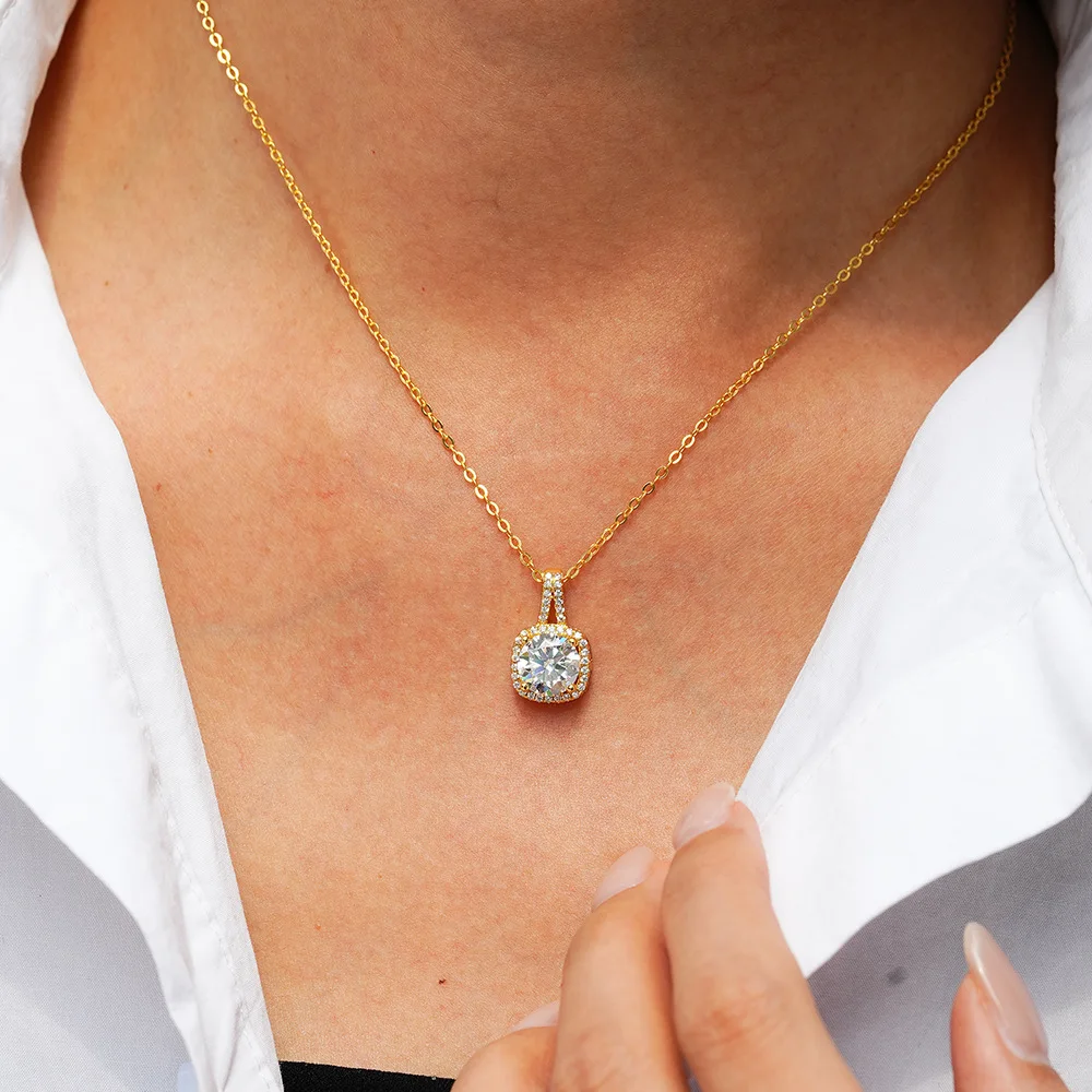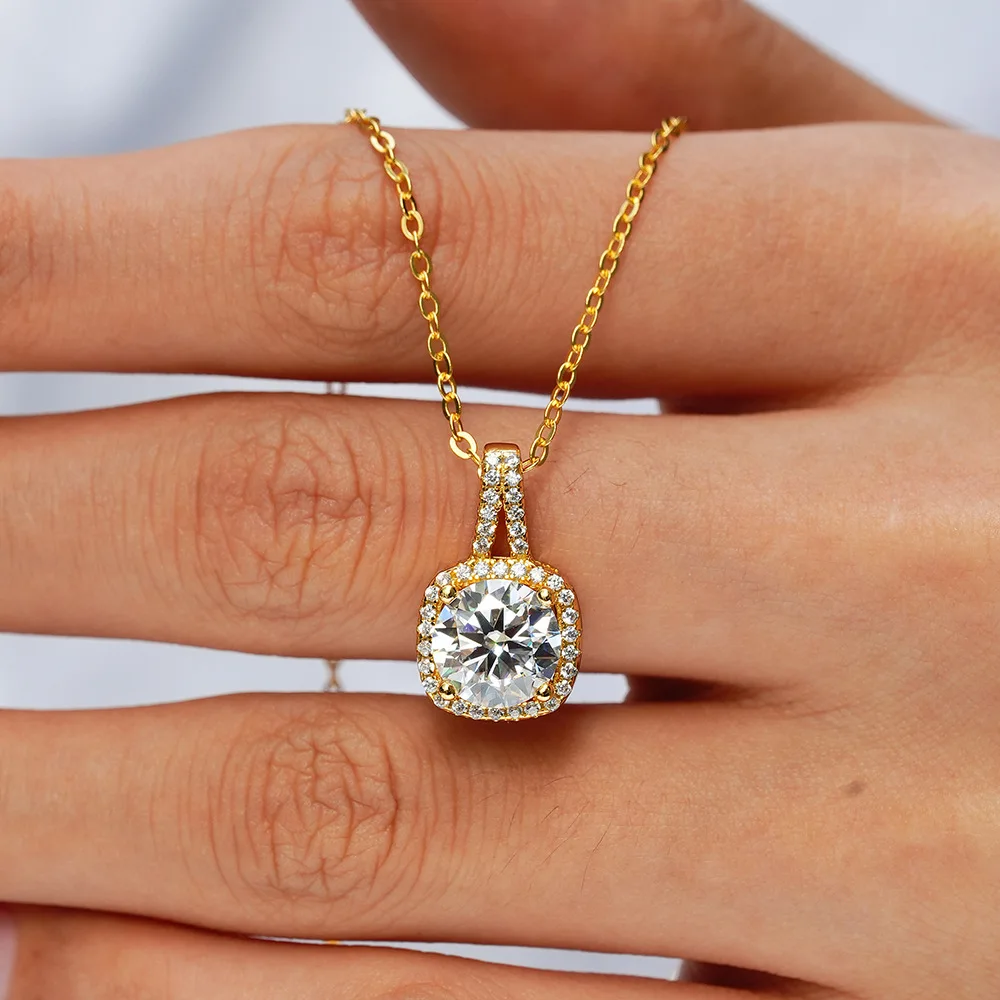 Make a striking impression with this exquisite 14K gold pendant necklace, crafted for women who appreciate refined luxury. The classic square silhouette showcases a captivating floral design featuring deep red rubies and radiant moissanite stones that catch light beautifully. Choose between 1ct or 2ct to match your personal style and desired impact. This bold fine jewelry piece transcends occasions—wear it as your signature accessory or reserve it for moments that deserve something extraordinary. Durable, dazzling, and distinctly yours.