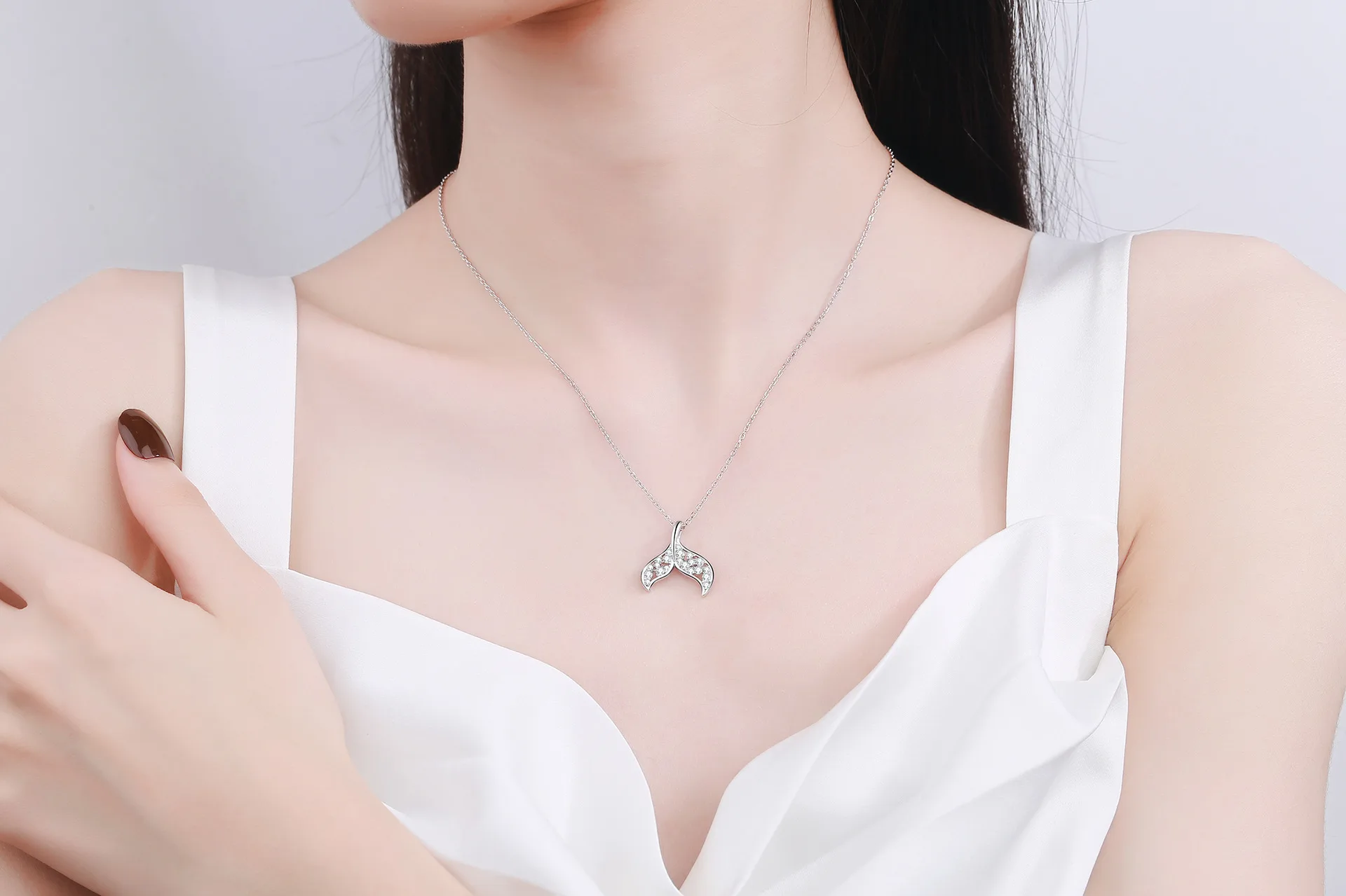 Platinum PT950 Mermaid Tail Necklace for Women Luxury Creative Personalized Diamond Pendant Collarbone Jewelry