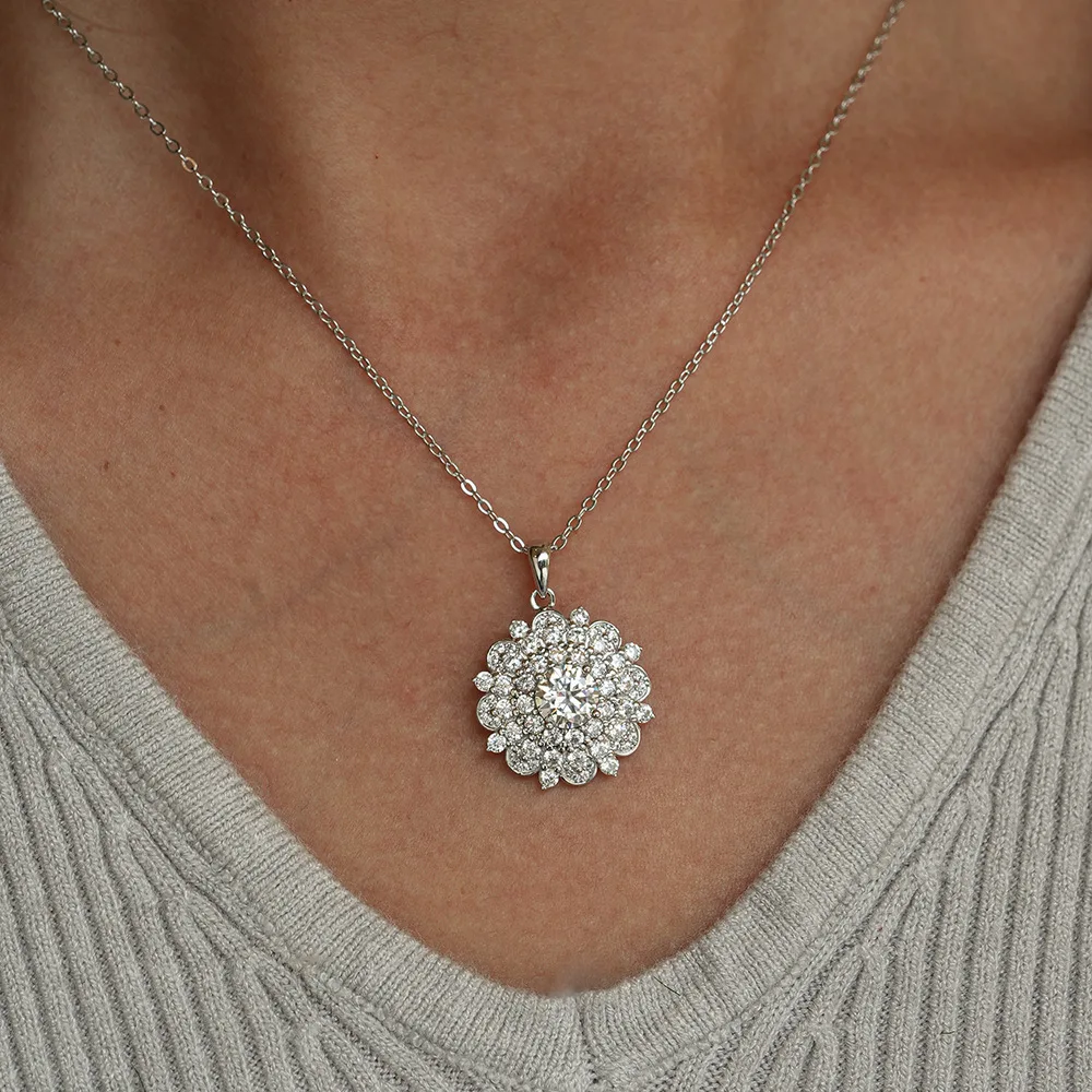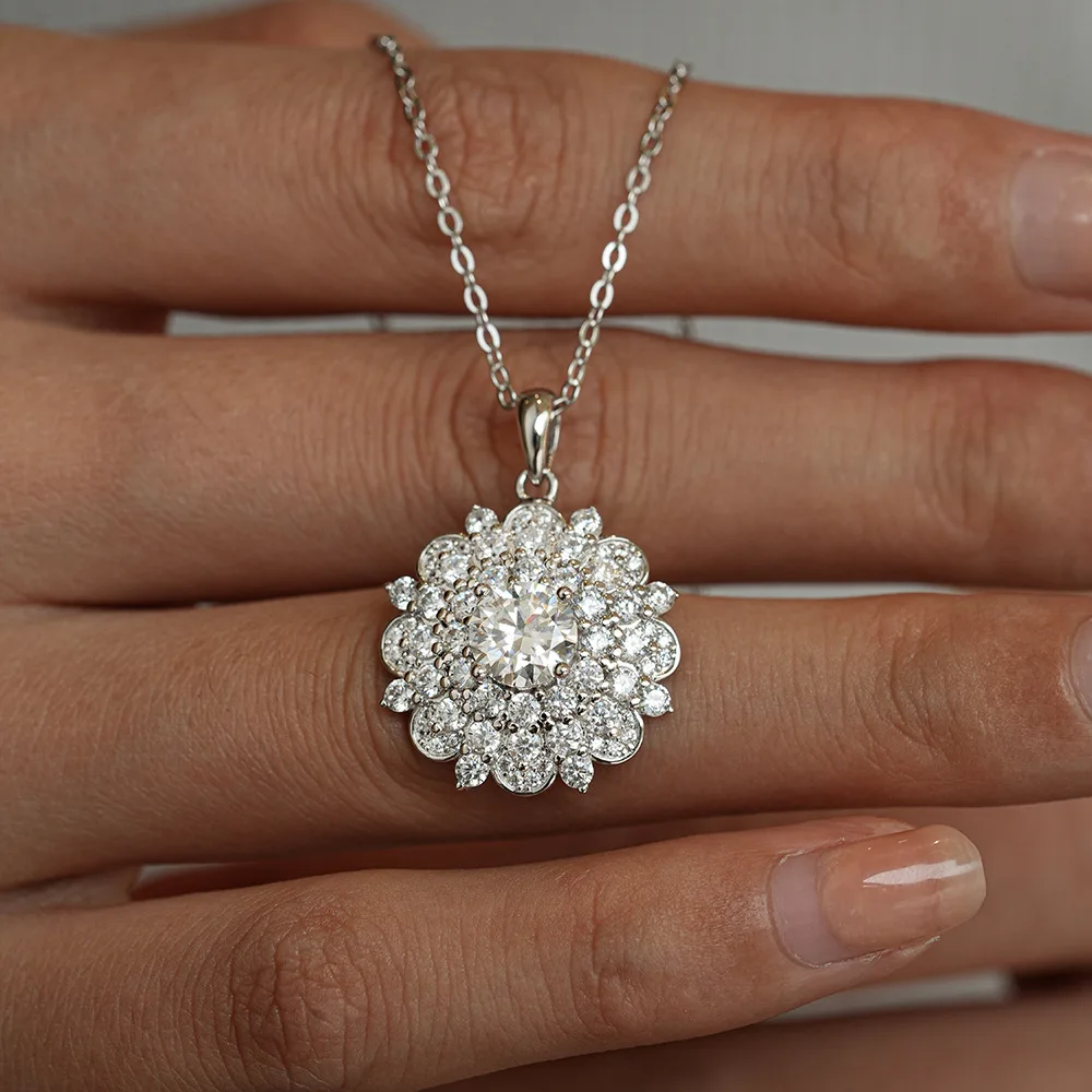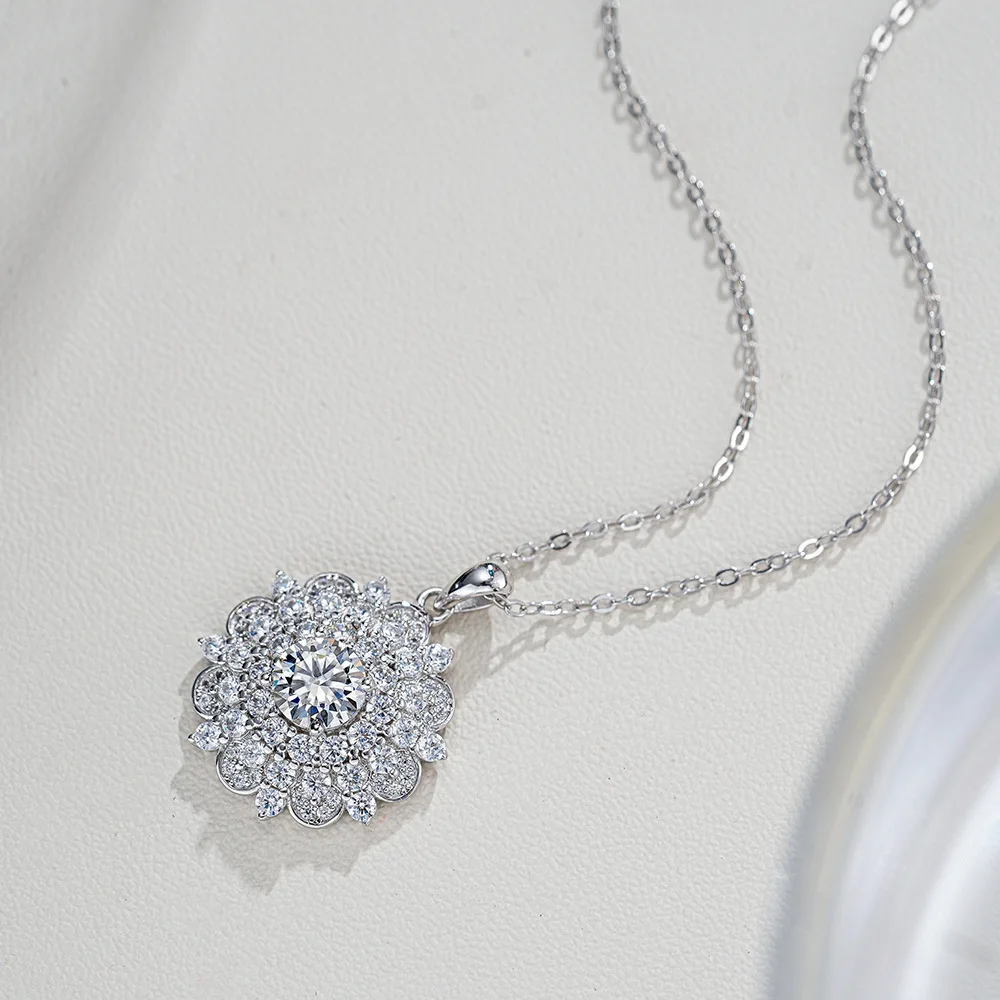 Platinum Pt950 Pendant 1ct Diamond Moissanite Necklace Women's Sunflower Classic Six-Claw Snowflakes 18k White Gold Jewelry