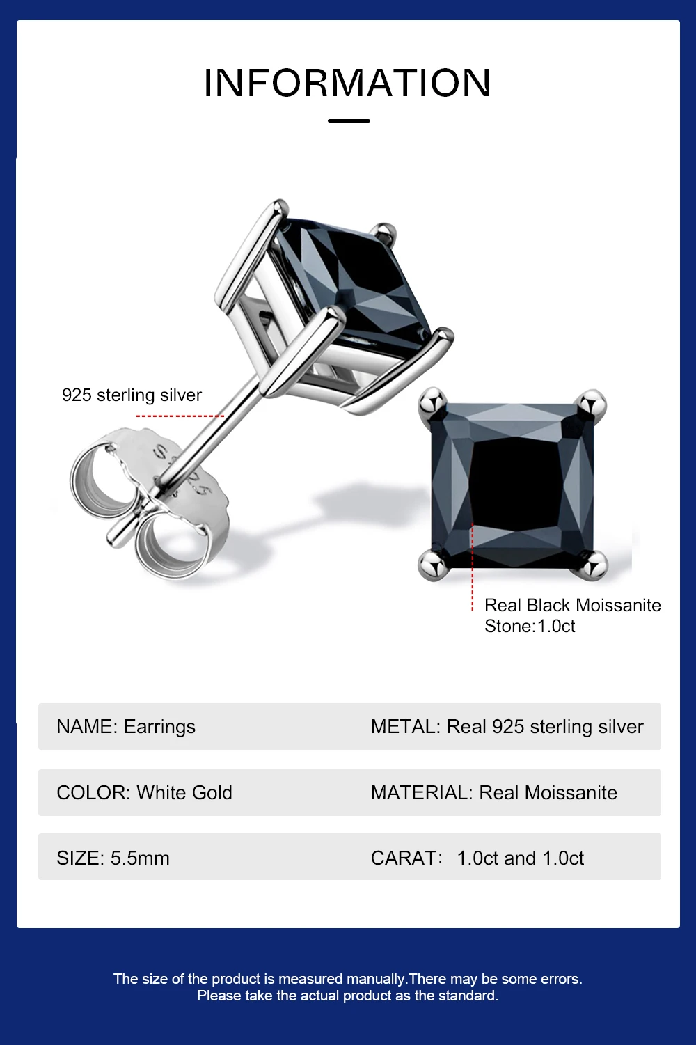 These elegant stud earrings feature certified moissanite stones with exceptional brilliance and durability. Crafted from authentic 925 sterling silver, each earring showcases a precisely cut gemstone equivalent to 1 carat in diamond weight. The princess and cushion cut designs offer sophisticated sparkle suitable for both everyday wear and special occasions. Moissanite provides superior hardness and clarity while maintaining an affordable luxury appeal. An ideal gift for anyone seeking timeless elegance with modern gemstone technology.