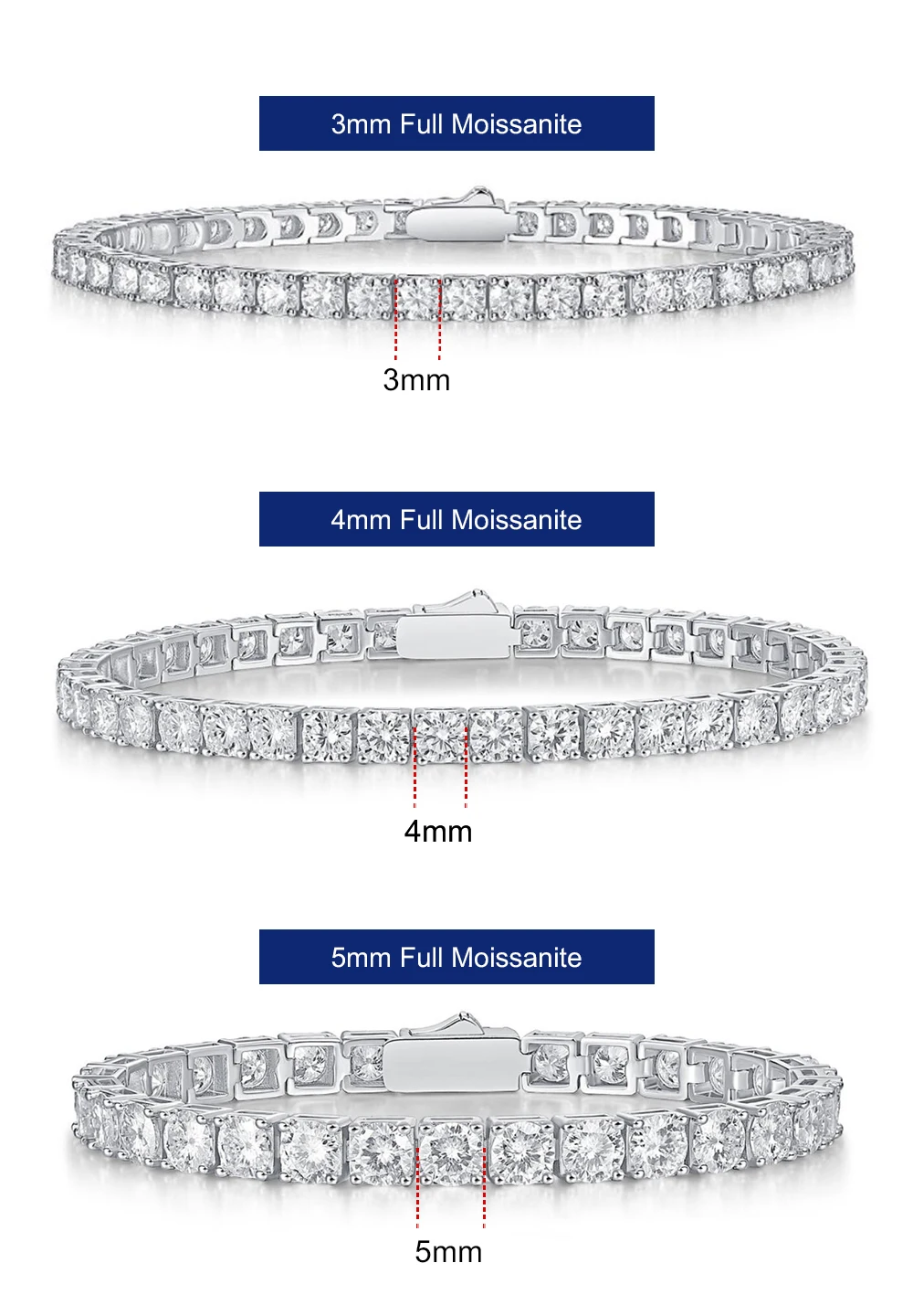 Real Moissanite 3/4/5mm Tennis Bracelet for Women Man Original 925 Sterling Silver Plated 18k Gold Diamond Bracelets with GRA