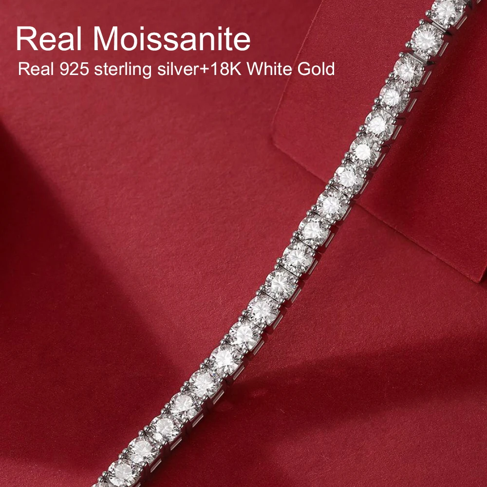 This Real Moissanite Tennis Bracelet is a timeless and elegant piece that is perfect for both men and women. Made with genuine 925 sterling silver and plated with 18k gold, this bracelet boasts 3/4/5mm real moissanite stones that give off a stunning diamond-like sparkle. Complete with GRA certification, it's a quality piece that will elevate any outfit.