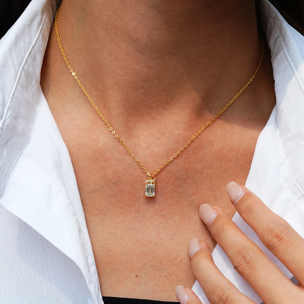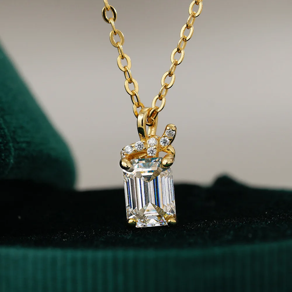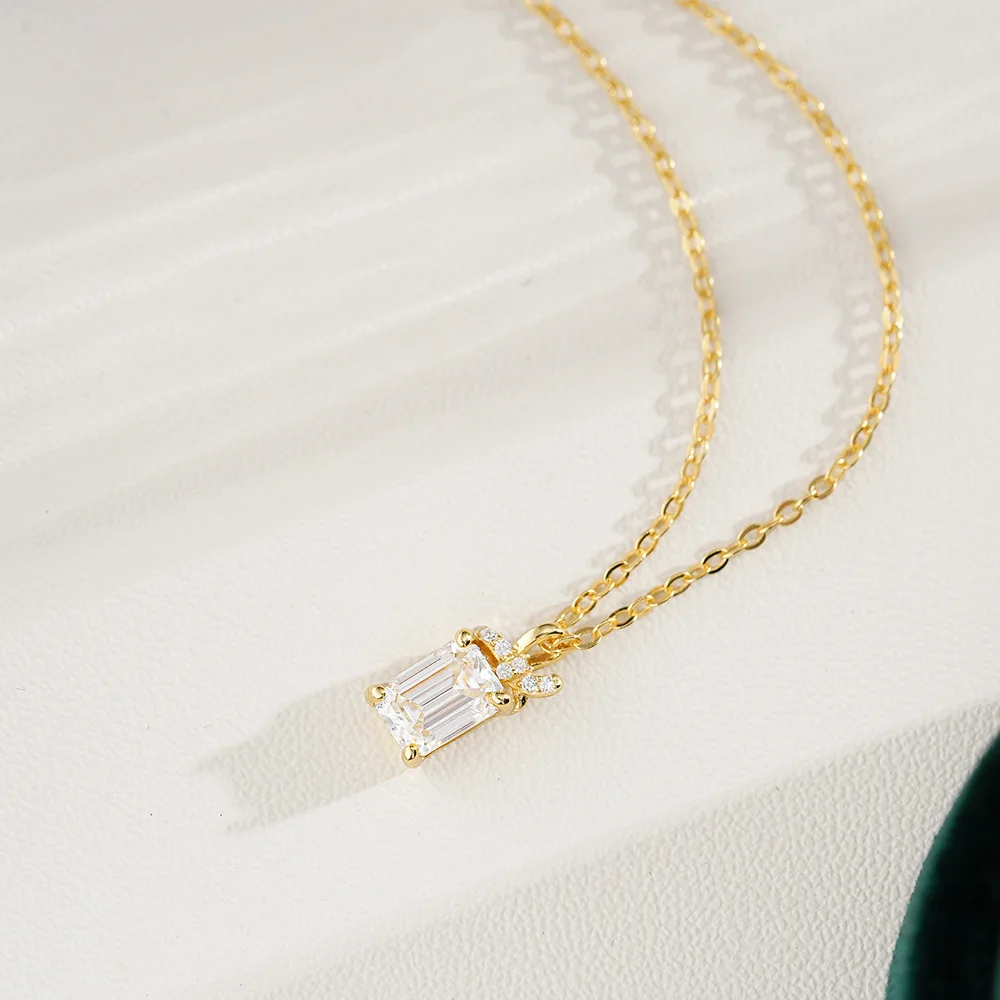 Rectangular D Color Emerald Pendant for Women 14K Gold Full-inlaid Moissanite Necklace Birthday Gift Fine Jewelry