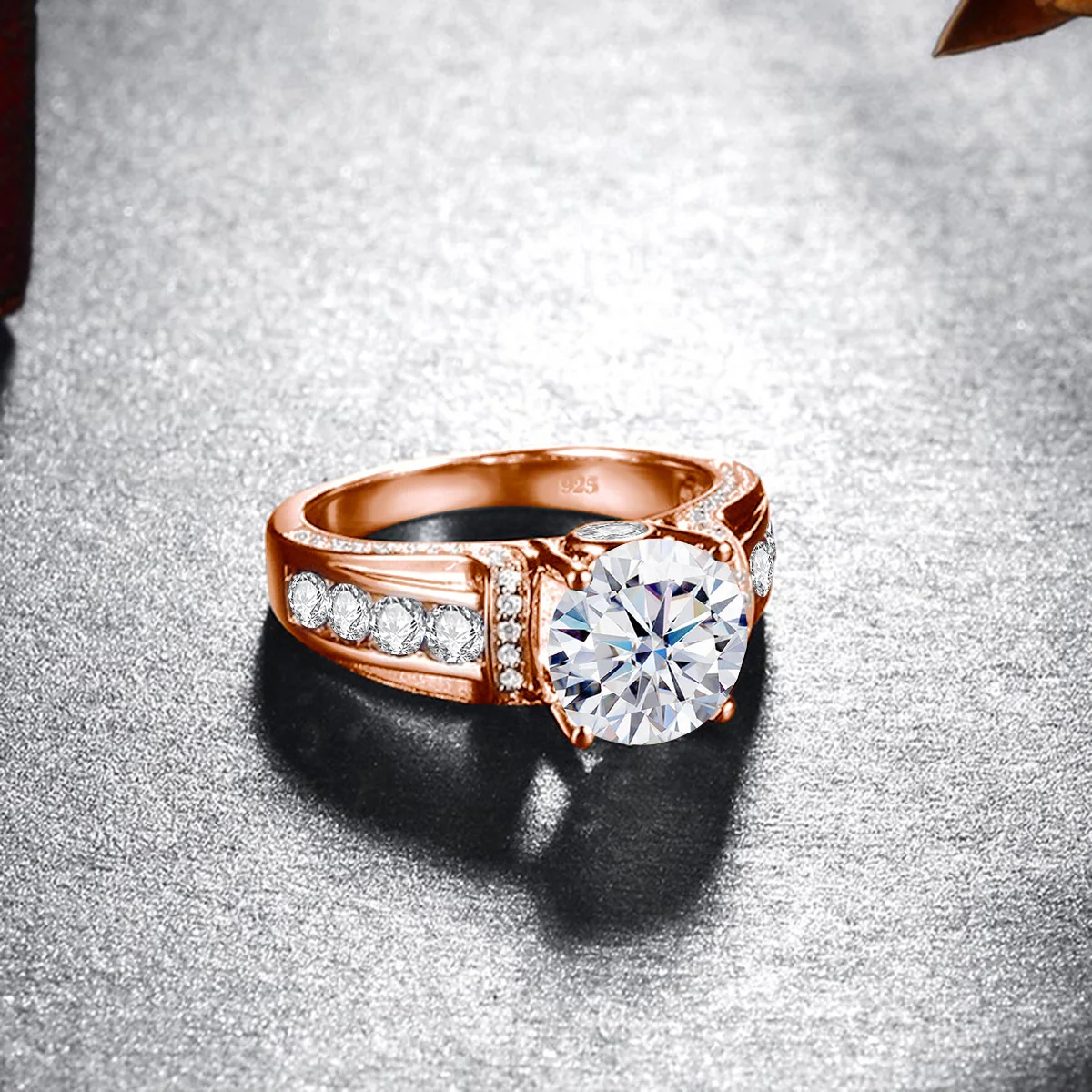 Elevate elegance with this expert-crafted 2ct round cut moissanite ring, set in warm rose gold for a timeless appeal. Certified for authenticity, this delicately designed piece offers exceptional brilliance and fire, surpassing traditional diamond standards. Perfect for weddings or as a meaningful gift, its refined craftsmanship ensures lasting beauty and sophistication.